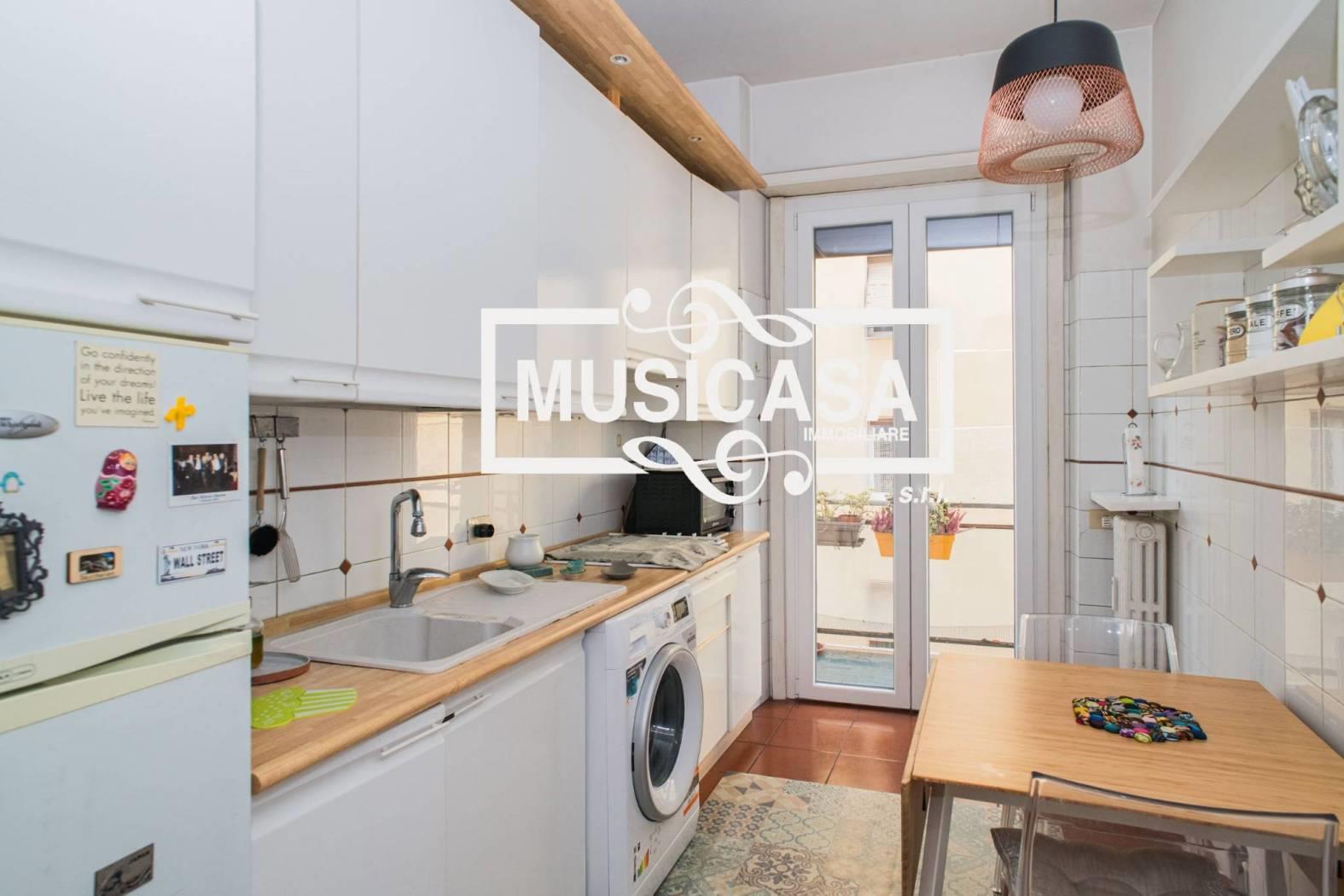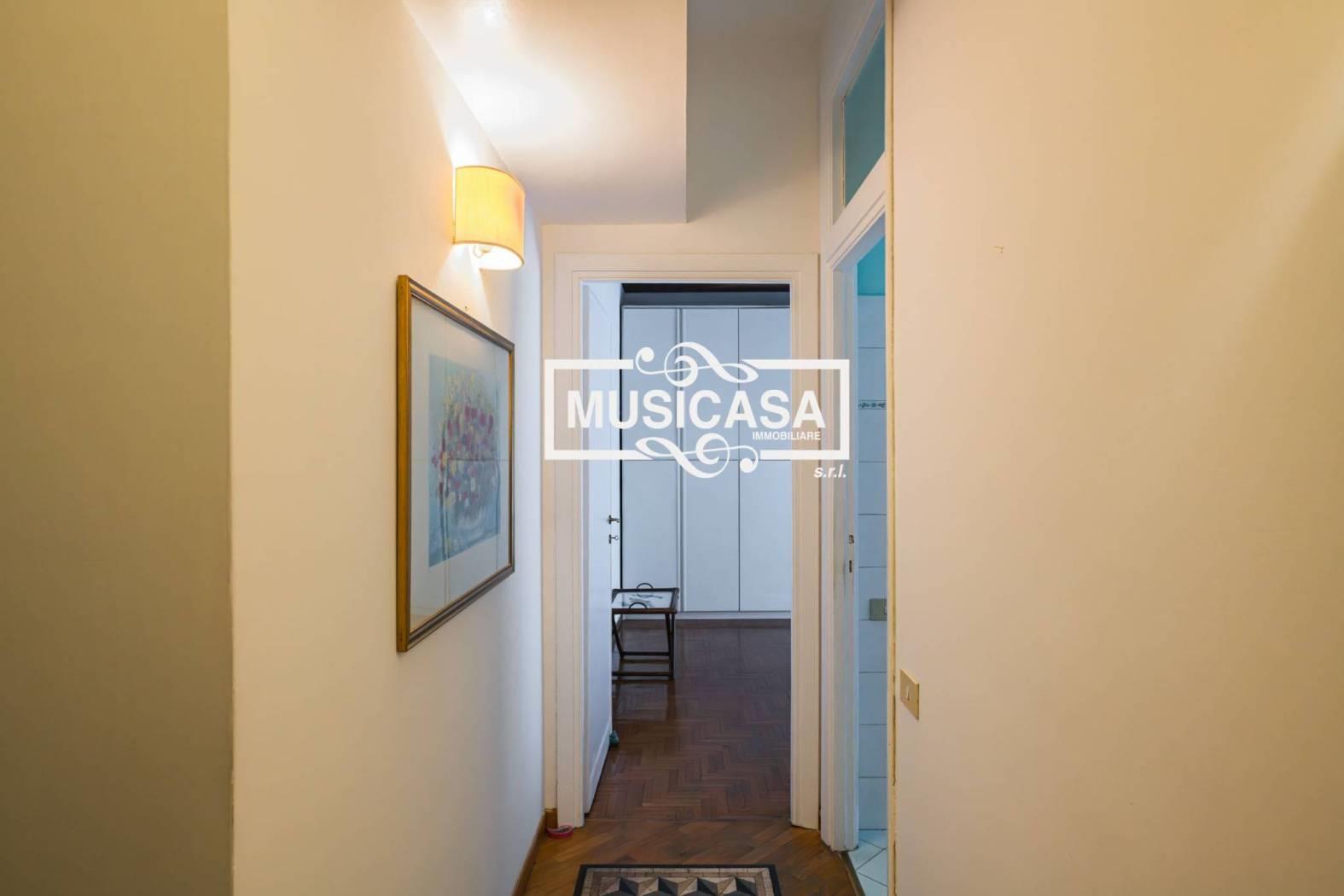 Composto da: ingresso, ampio soggiorno con accesso sul balcone, cucina abitabile con affaccio sul balcone; zona notte: disimpegno con armadio a muro, una grande camera da letto con balcone, bagno con doccia e finestra.