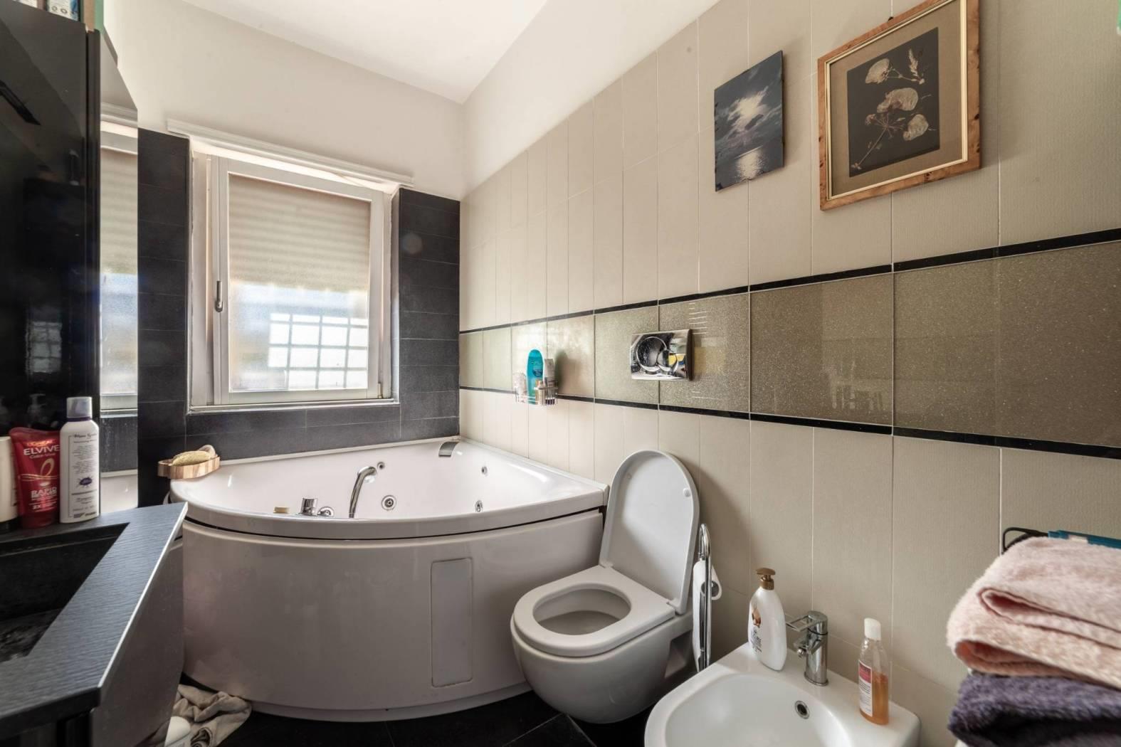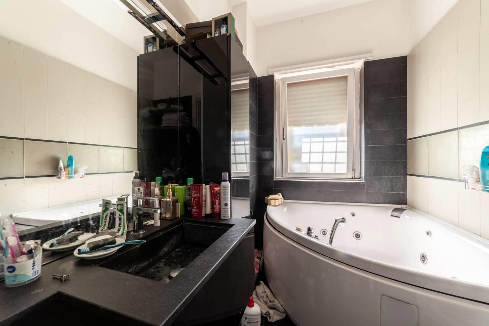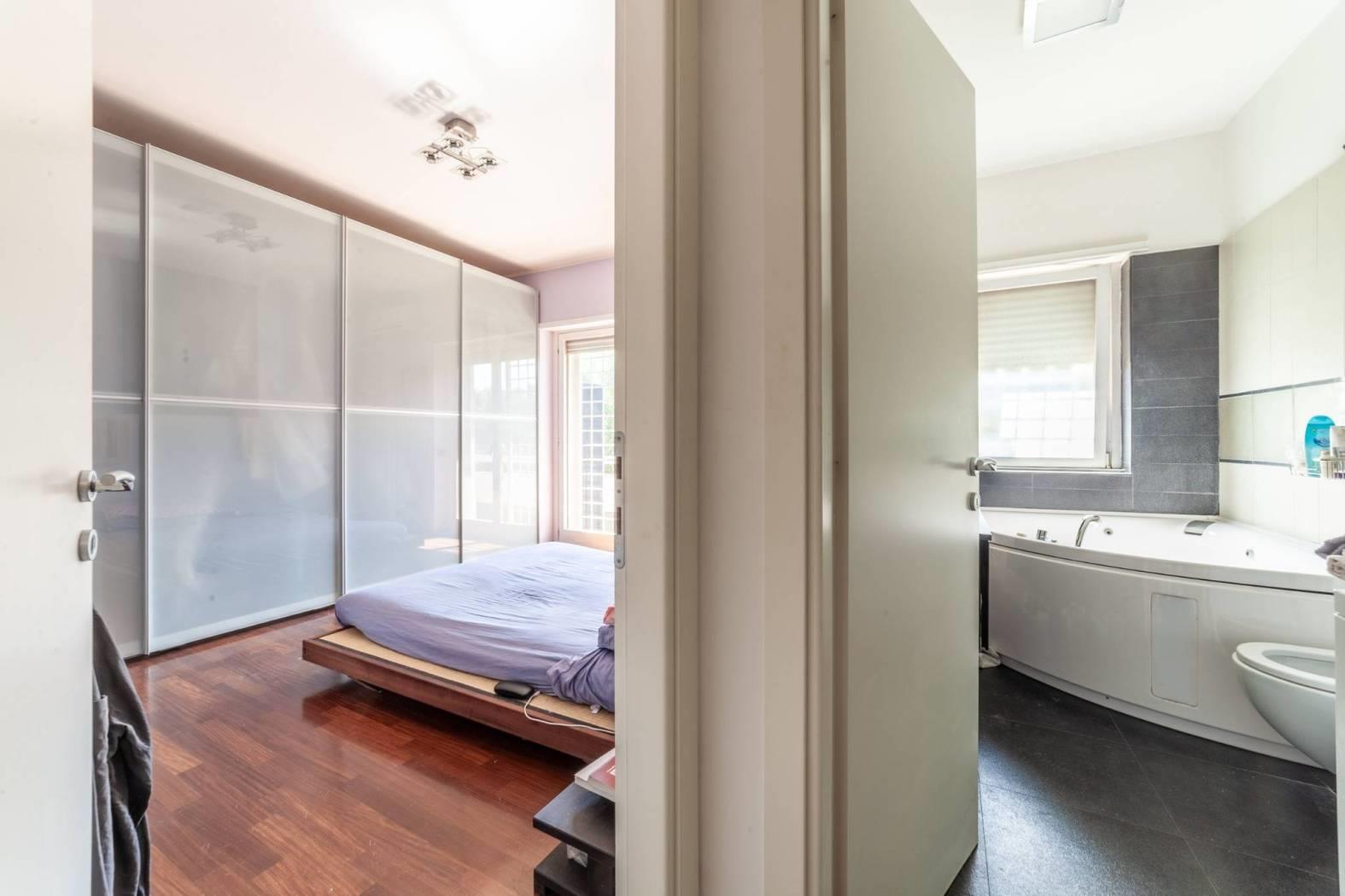bagno finestrato con vasca. Pavimenti in parquet e rifiniture di pregio.