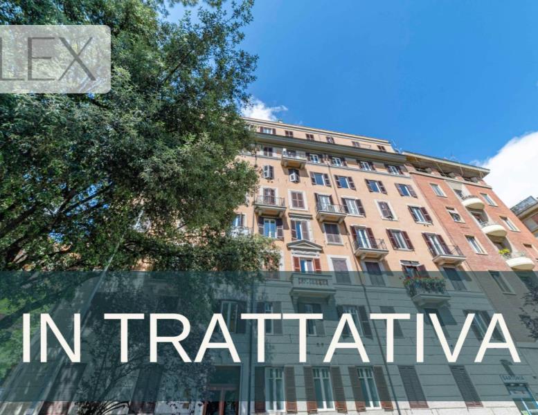 Rif. LP/278 (VIALE GIUSEPPE MAZZINI) LUMINOSO PIANO NOBILE, ingresso con corridoio, salone, quattro camere,cucina abitabile, due servizi, due BALCONI, cantina. NUDA PROPRIETA' 80enne € 650.000 Tel 06.69339108 www.lexrealestate.it