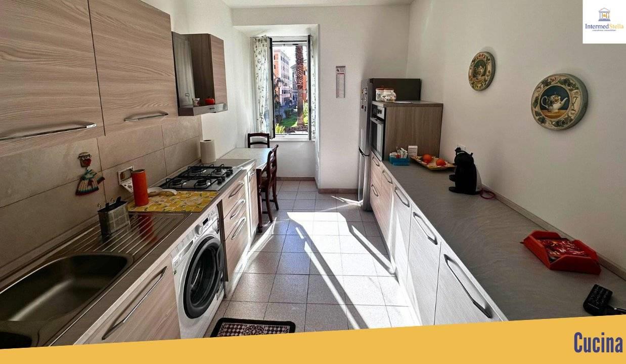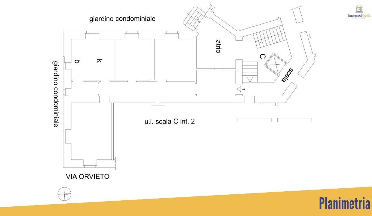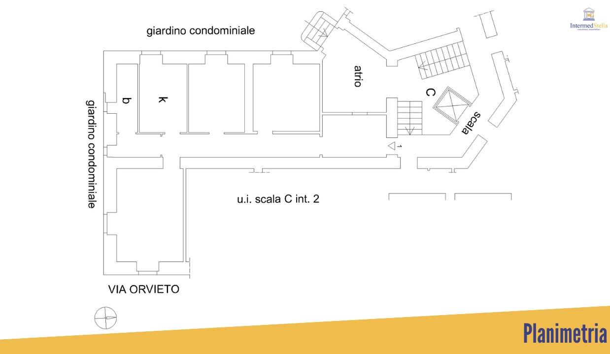 La nuda proprietà (la proprietaria ha 80 anni) è così suddivisa: ampio ingresso con finestra, salone, due camere, cucina abitabile, corridoio, antibagno e bagno.