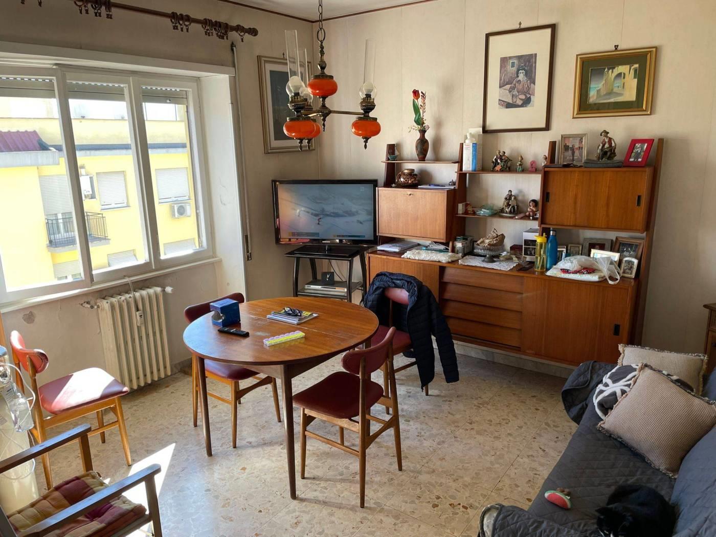L'appartamento è composto da: ingresso, soggiorno, due camere da letto, cucina, ripostiglio e bagno.