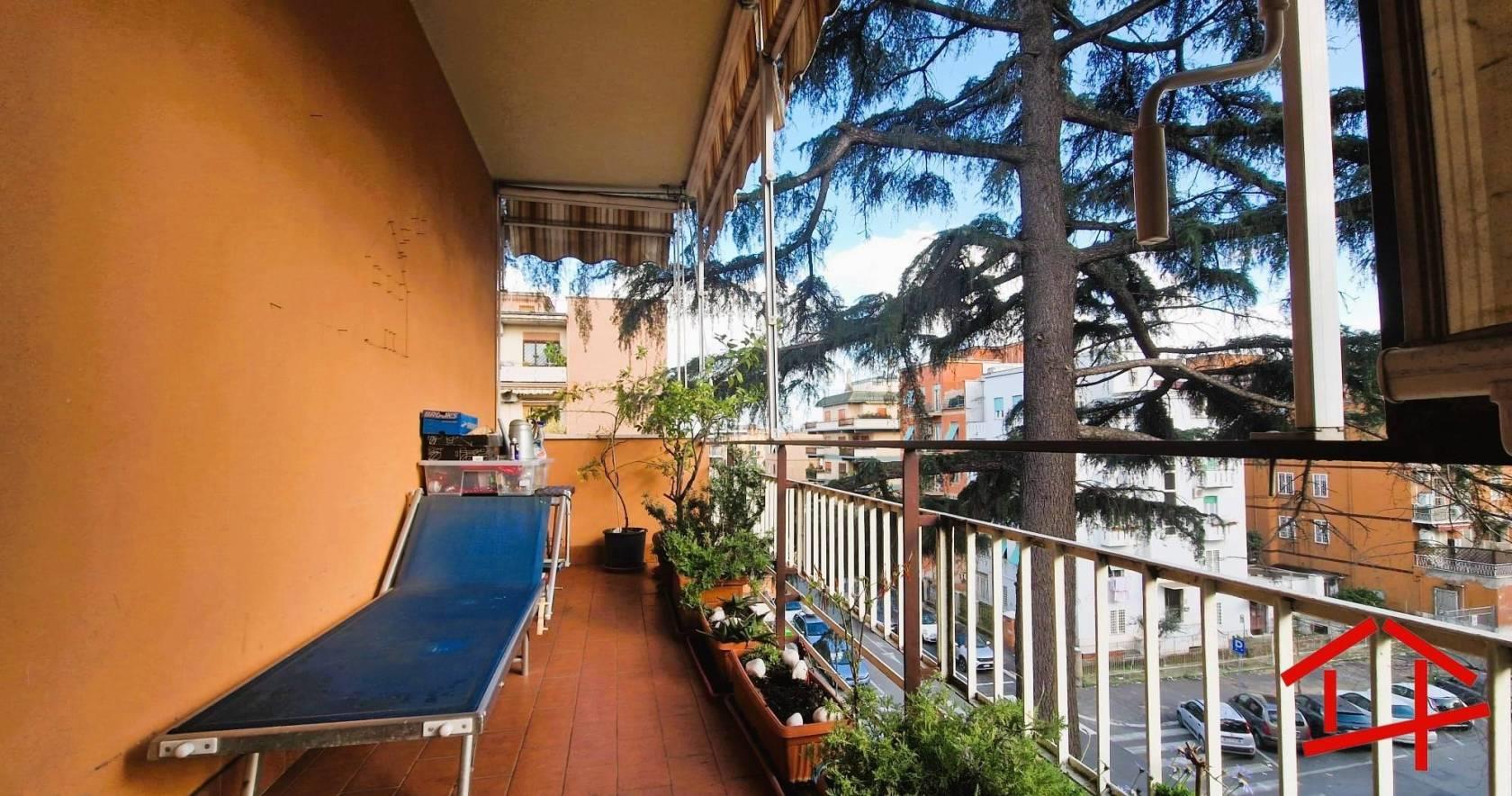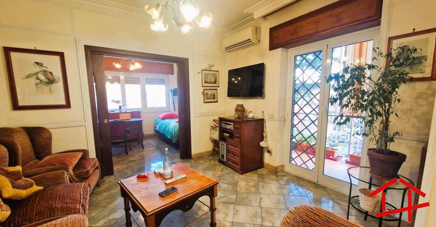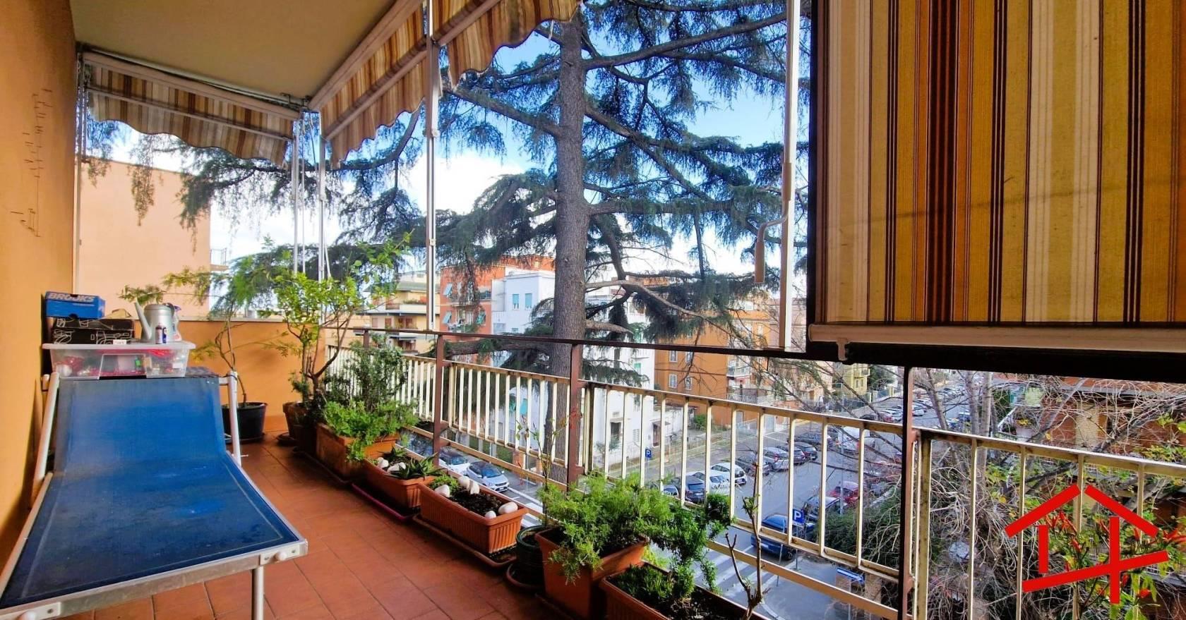 L'immobile, in buono stato, si compone di ingresso, soggiorno, cucina, due camere da letto, servizio finestrato e due ampi balconi con accesso uno dalla zona giorno e uno dalla zona notte.