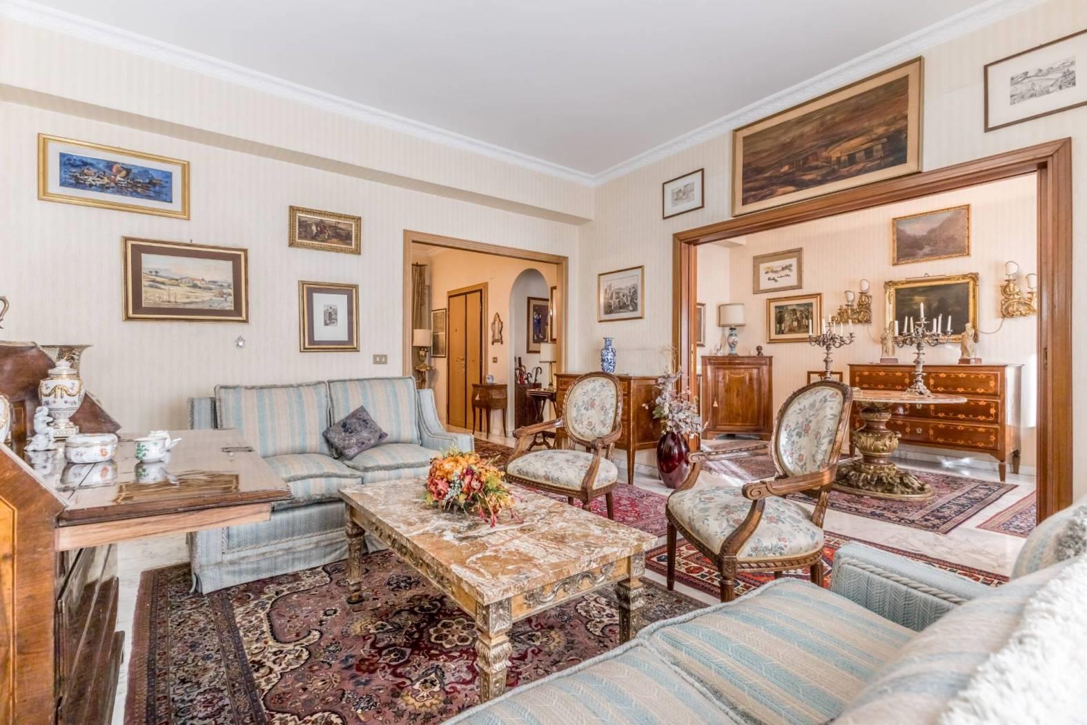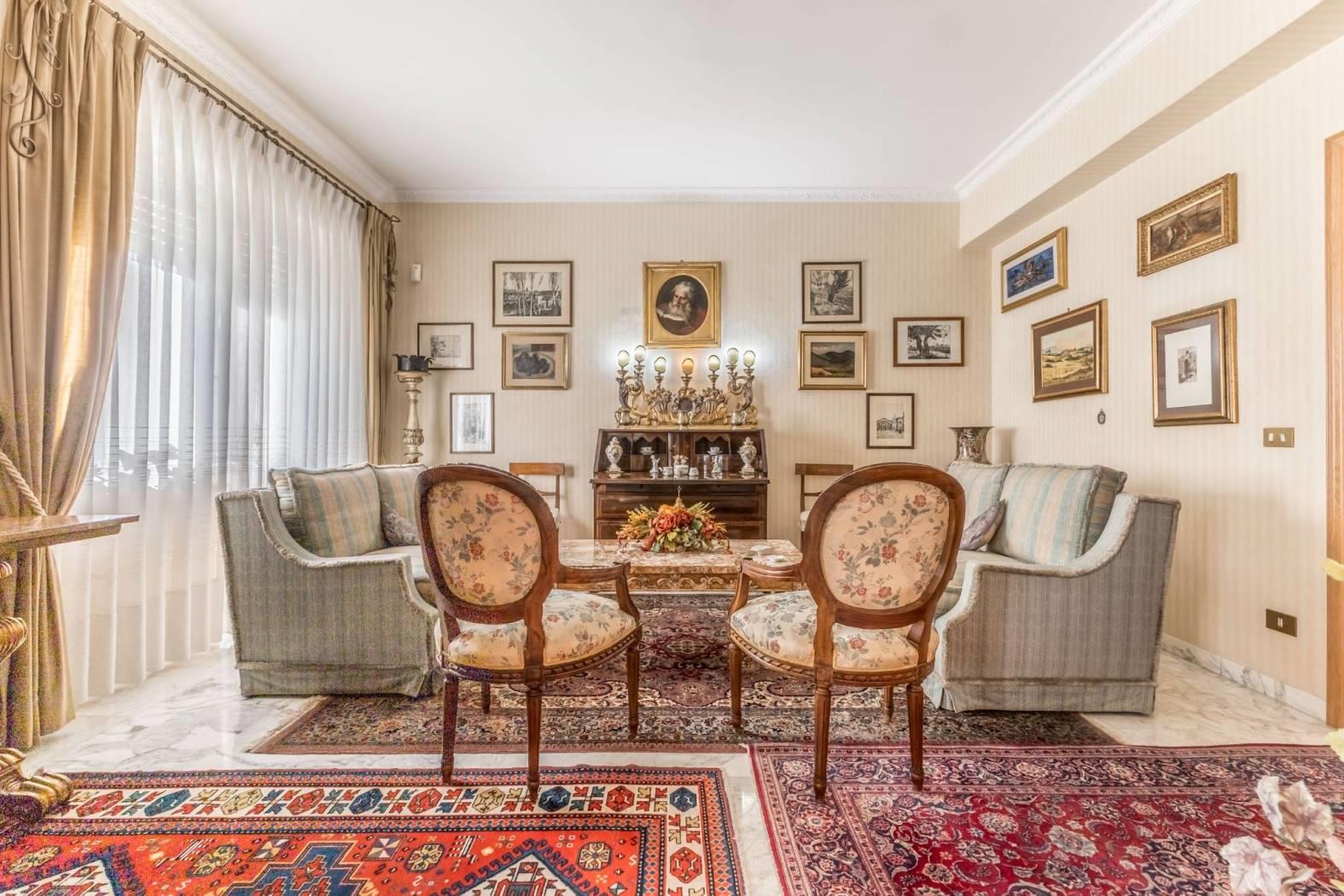 L’immobile è situato al terzo piano di un palazzo signorile in perfette condizioni, dotato di ascensore e servizio di portineria per l’intera giornata. L’appartamento si distingue per la grande luminosità e l’ampia metratura, con una distribuzione interna armoniosa e ambienti ariosi.