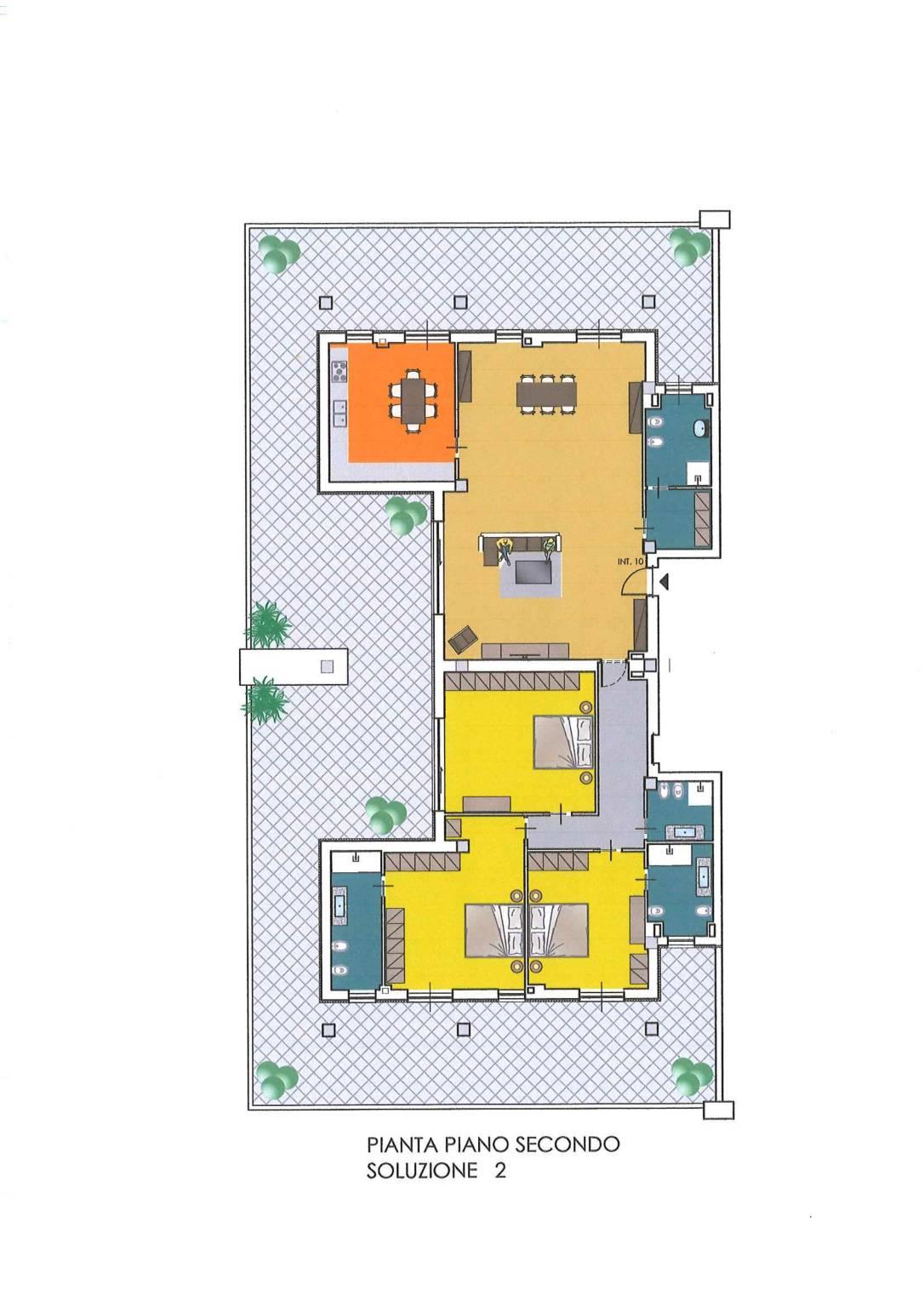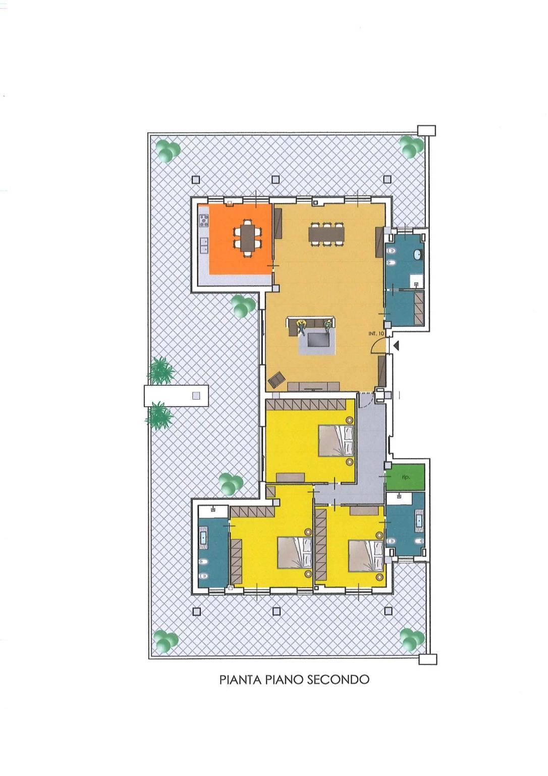 Internamente si compone di un ampio salone, cucina abitabile, tre camere matrimoniali e tre servizi finestrati.