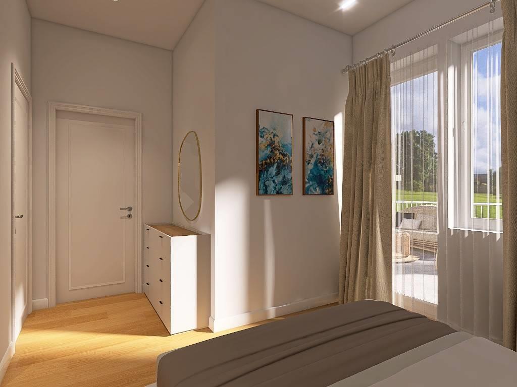 Finestre di colore bianco in PVC con vetrocamera e tapparelle motorizzate sempre in PVC di colore grigio chiaro. Illuminazione a led in alcune zone a scomparsa nelle controsoffittature. Riscaldamento a pavimento radiante sviluppato con pompa di calore di ultima generazione per garantire alte prestazioni con bassi consumi.