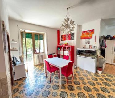 Così meglio descritta: Entrando troviamo un disimpegno che ci conduce alla cucina abitabile, un servizio e una camera patronale con possibilità di creare una seconda camera.