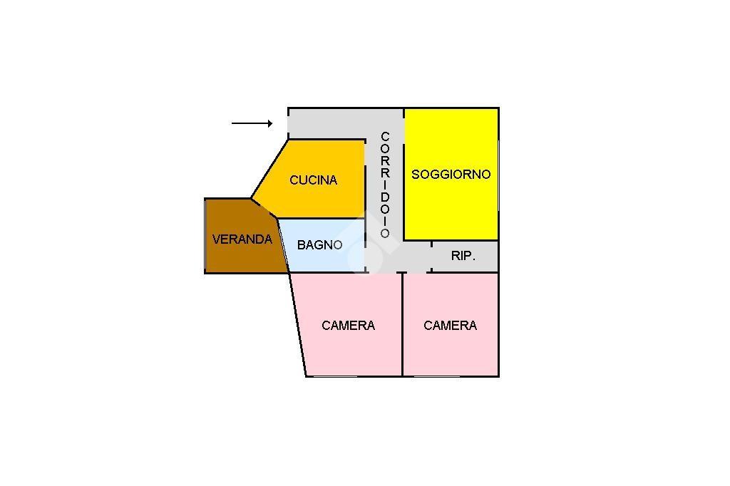 L'immobile si presenta internamente allo stato originario e si sviluppa nella zona giorno dall'ingresso da cui si accede ad un ampio salone. Proseguendo lungo il corridoio troviamo un'ampia cucina abitabile e una veranda chiusa che permette di aumentare gli spazi della medesima. L'immobile presenta due ampie camere da letto matrimoniali e un bagno finestrato con vasca, oltre ad un ripostiglio.