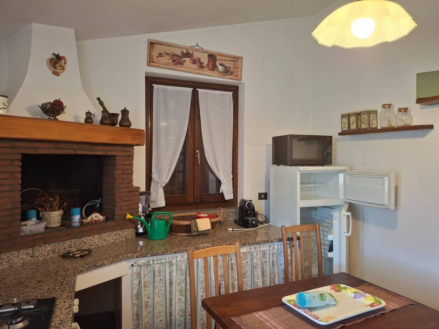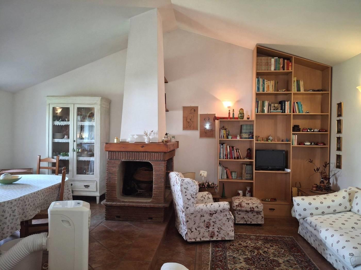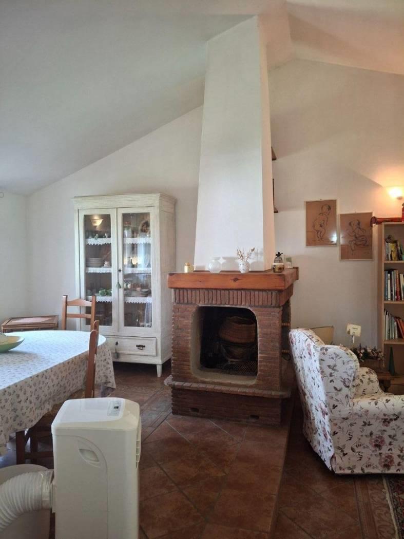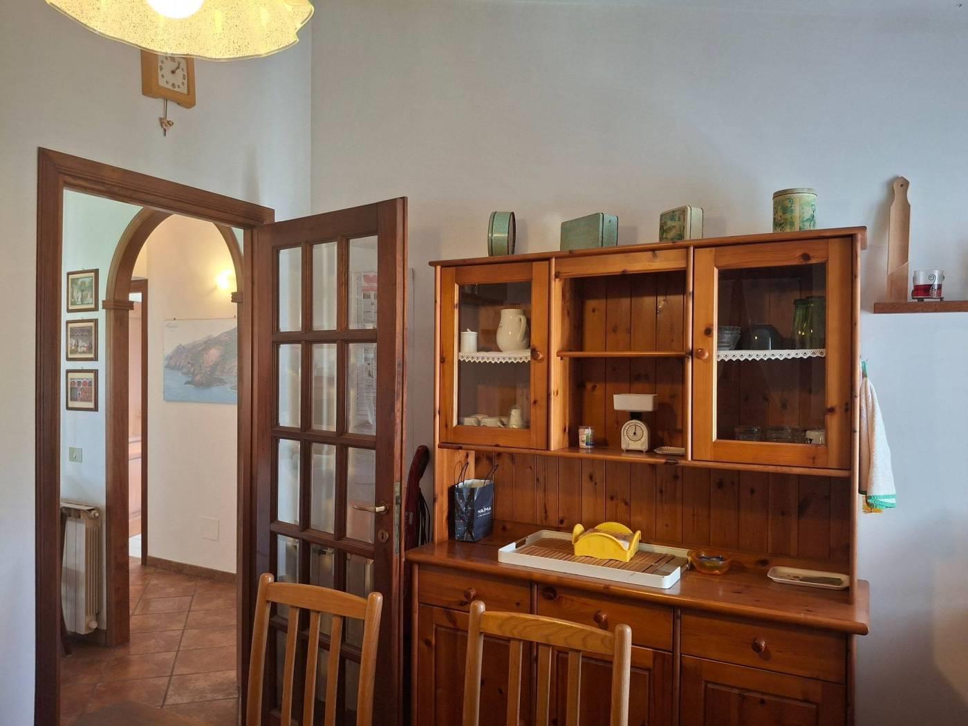 L'appartamento ha una metratura interna di mq 120 c.a. ed è composto da salone con camino, due ampie camere da letto, doppi servizi cucina abitabile (con barbecue in muratura) ed un portico di mq 15 c.a dove poter comodamente mangiare nella bella stagione. E' un immobile completamente arredato, con una doppia esposizione, Est/Ovest . No spese di condominio, riscaldamento autonomo.
