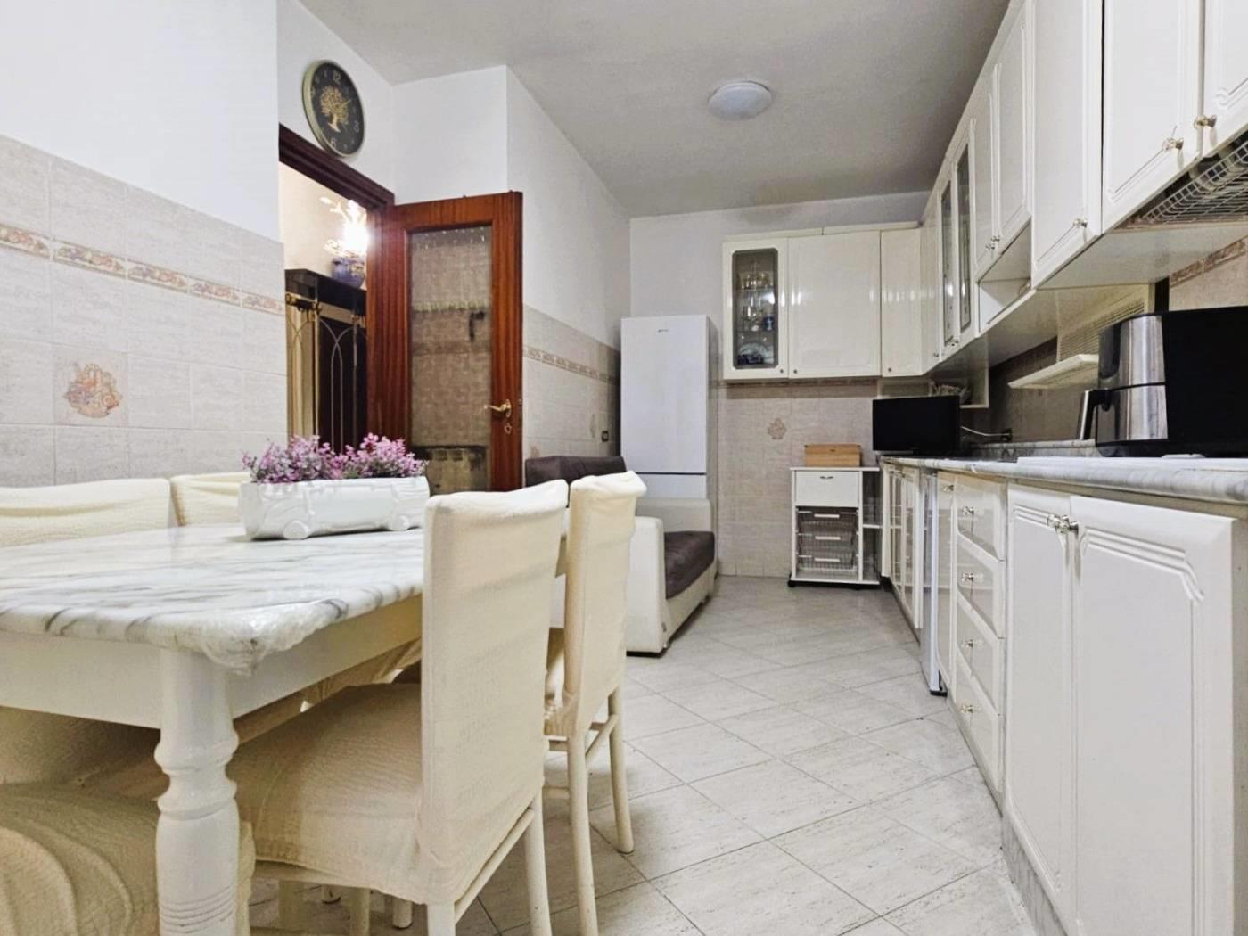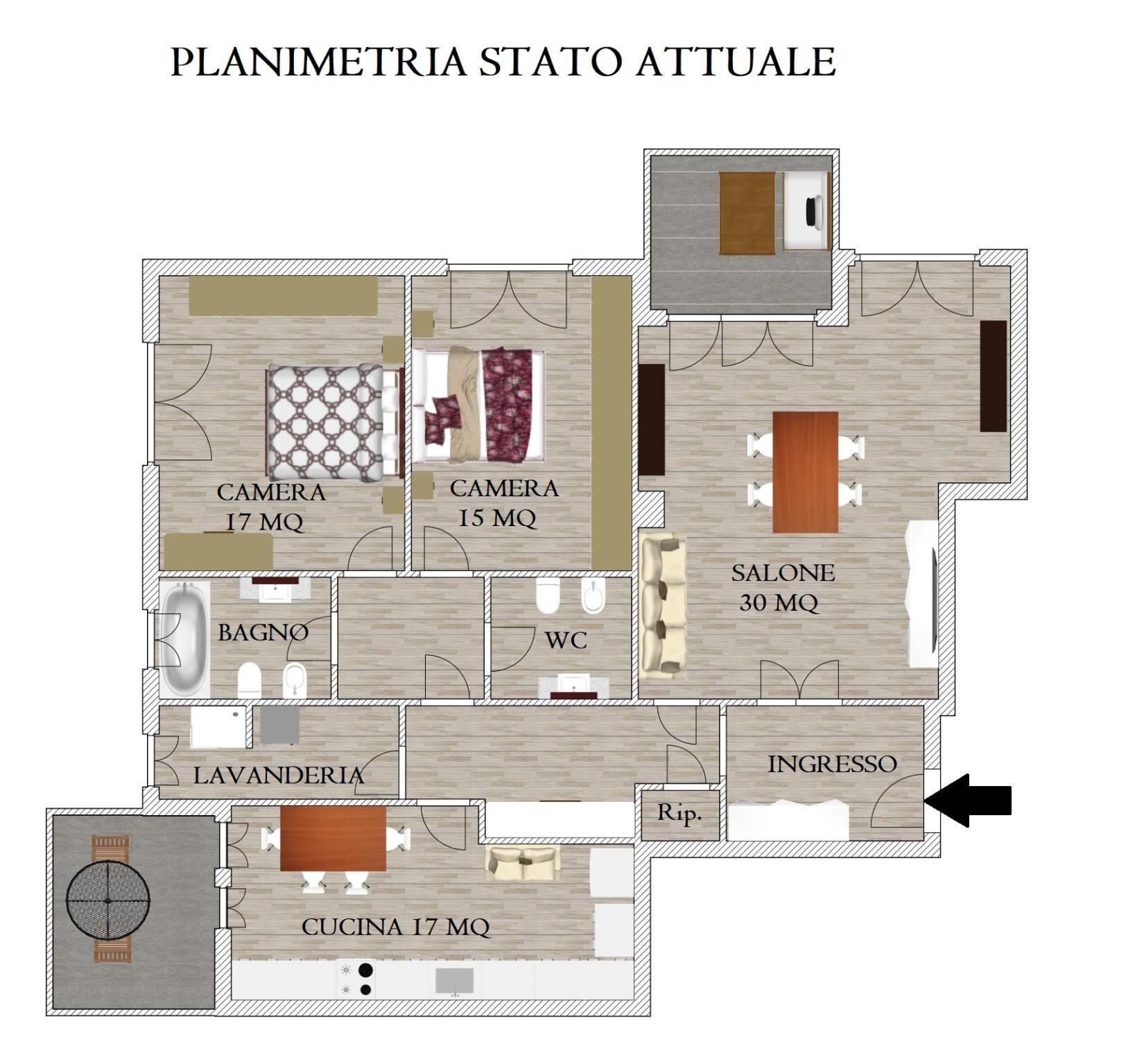 Proponiamo in vendita un ampio appartamento di 130 mq posto al primo piano con ascensore in un elegante fabbricato in cortina. Attualmente composto da ampio ingresso, salone doppio servito da un terrazzino abitabile, due camere da letto matrimoniali, cucina abitabile molto grande servita dal secondo balcone abitabile, due bagni, lavanderia e un ripostiglio. Completa la proprietà una cantina. Esposizione doppia, vista libera. Possibilità di una diversa distribuzione interna (consultate le planimetrie).