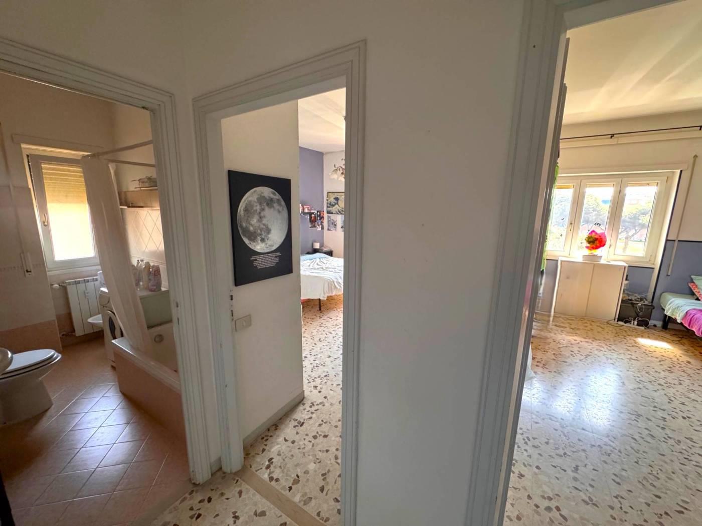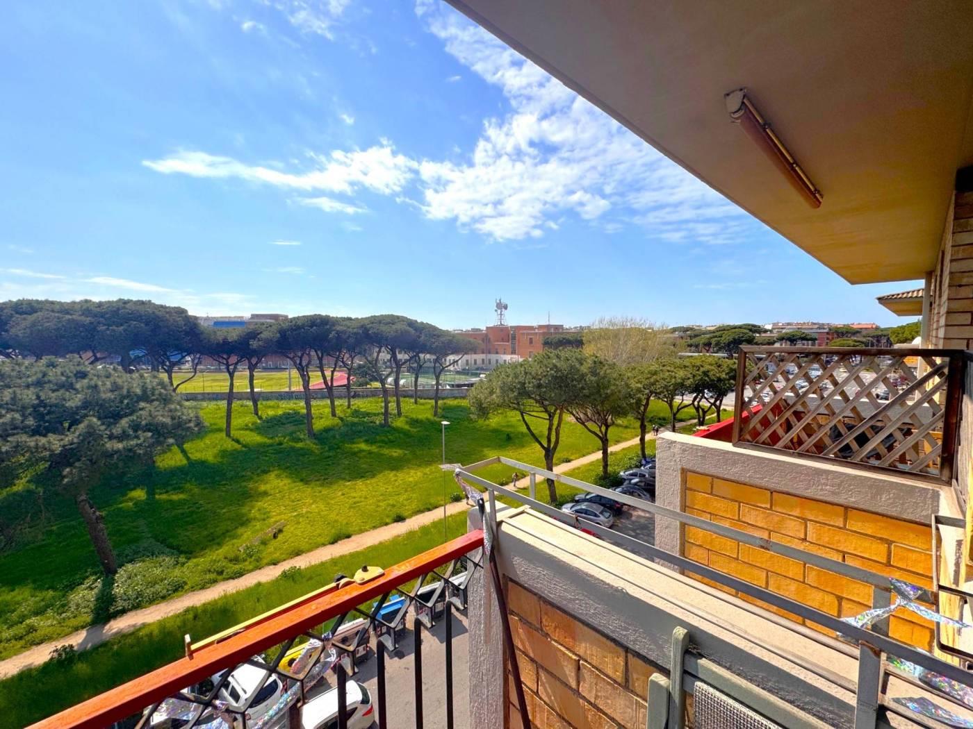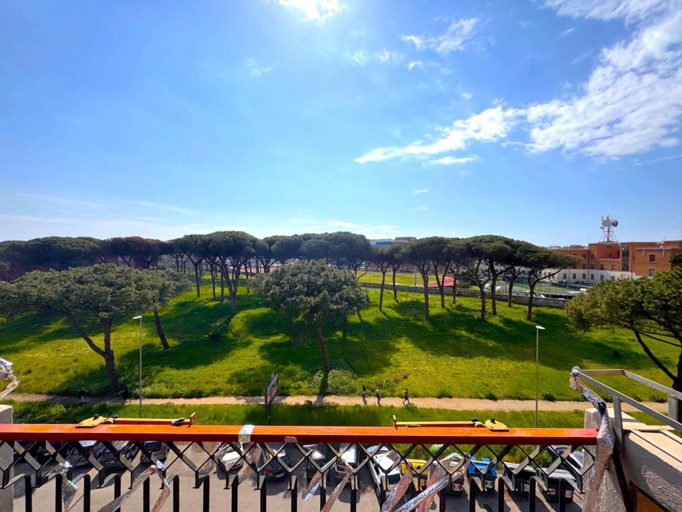 OSTIA LEVANTE - VIA MAR ROSSO N. 13; in zona ben servita, all'interno di un condominio signorile con servizio di portierato. Luminoso trilocale di circa 100 mq commerciali, sito al 4° piano con ascensore, con bell'affaccio aperto verso la pineta sottostante (direzione sud-ovest), composto da: ampio ingresso, salone con porta finestra ed uscita diretta sul terrazzino abitabile (tavolo per 6 persone), corridoio con disimpegno, due ampie camere matrimoniali, cucina abitabile, ampio bagno finestrato, ripostiglio. Eventualmente sarebbe possibile ricavare anche la terza camera e/o un secondo bagno. Buone condizioni generali anche se necessita di qualche lavoro di ristrutturazione. Riscaldamento centralizzato, doppia esposizione: est-sud/ovest. Classe energetica "F". RomaDomus Immobiliare tel. 06-98.93.52.11