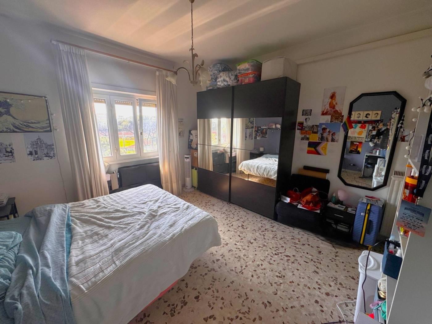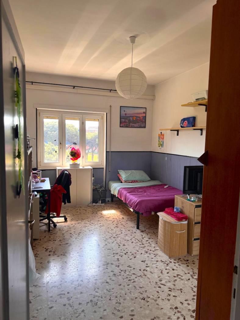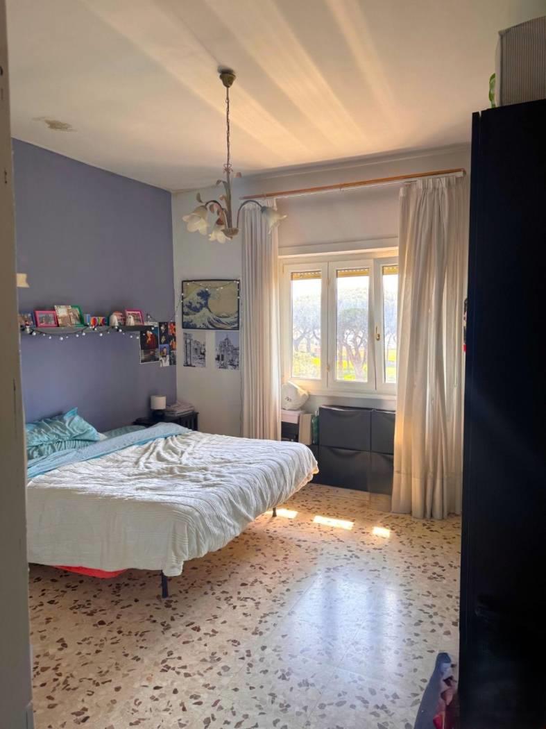 OSTIA LEVANTE - VIA MAR ROSSO N. 13; in zona ben servita, all'interno di un condominio signorile con servizio di portierato. Luminoso trilocale di circa 100 mq commerciali, sito al 4° piano con ascensore, con bell'affaccio aperto verso la pineta sottostante (direzione sud-ovest), composto da: ampio ingresso, salone con porta finestra ed uscita diretta sul terrazzino abitabile (tavolo per 6 persone), corridoio con disimpegno, due ampie camere matrimoniali, cucina abitabile, ampio bagno finestrato, ripostiglio. Eventualmente sarebbe possibile ricavare anche la terza camera e/o un secondo bagno. Buone condizioni generali anche se necessita di qualche lavoro di ristrutturazione. Riscaldamento centralizzato, doppia esposizione: est-sud/ovest. Classe energetica "F". RomaDomus Immobiliare tel. 06-98.93.52.11