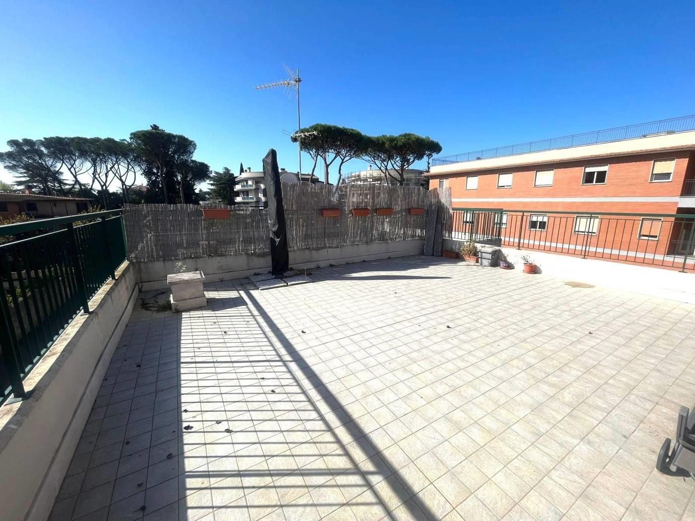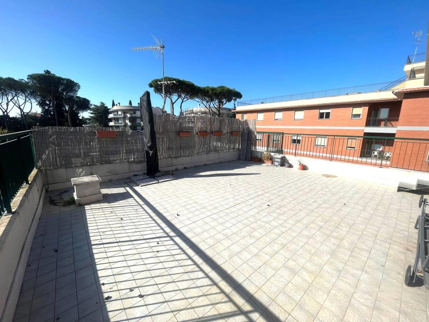L'immobile è composto da: 1°livello - salone, cucina abitabile arredata, bagno e 2 balconi, 2°livello - camera matrimoniale, locale disimpegno e terrazzo di 90mq. Completa la proprietà un box auto di 17 mq.