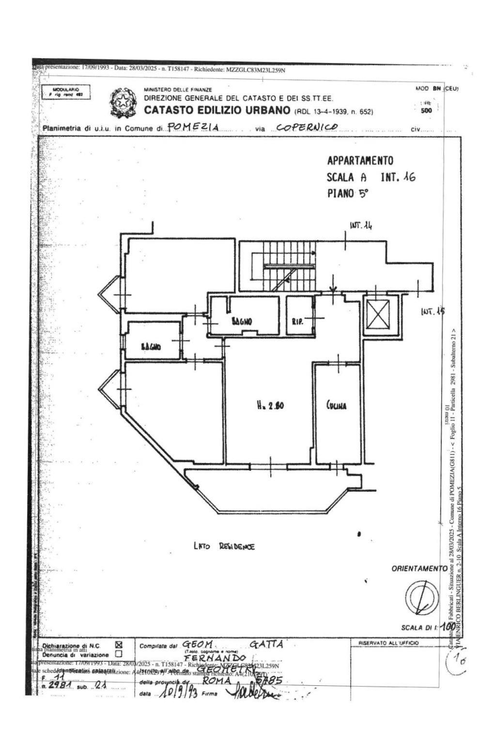 1206 A16 - POMEZIA – VIA ENRICO BERLINGUER – A pochi passi da via Roma in complesso abitativo ristrutturato con bonus facciale 110 e con portierato proponiamo in vendita un bell’ appartamento di 96 mq. commerciali con doppia esposizione, luminosissimo, posto al quinto piano. L’appartamento è composto da una zona giorno con ingresso, ampio salone e ampia cucina abitabile. La zona notte ha un disimpegno luminoso, due ampie camere da letto, due bagni uno con vasca e l’altro con doccia senza finestra, un ripostiglio. L’appartamento ha un bel terrazzo e due piccoli balconi panoramicissimi. Completa la proprietà un’ampia cantina e un posto auto.