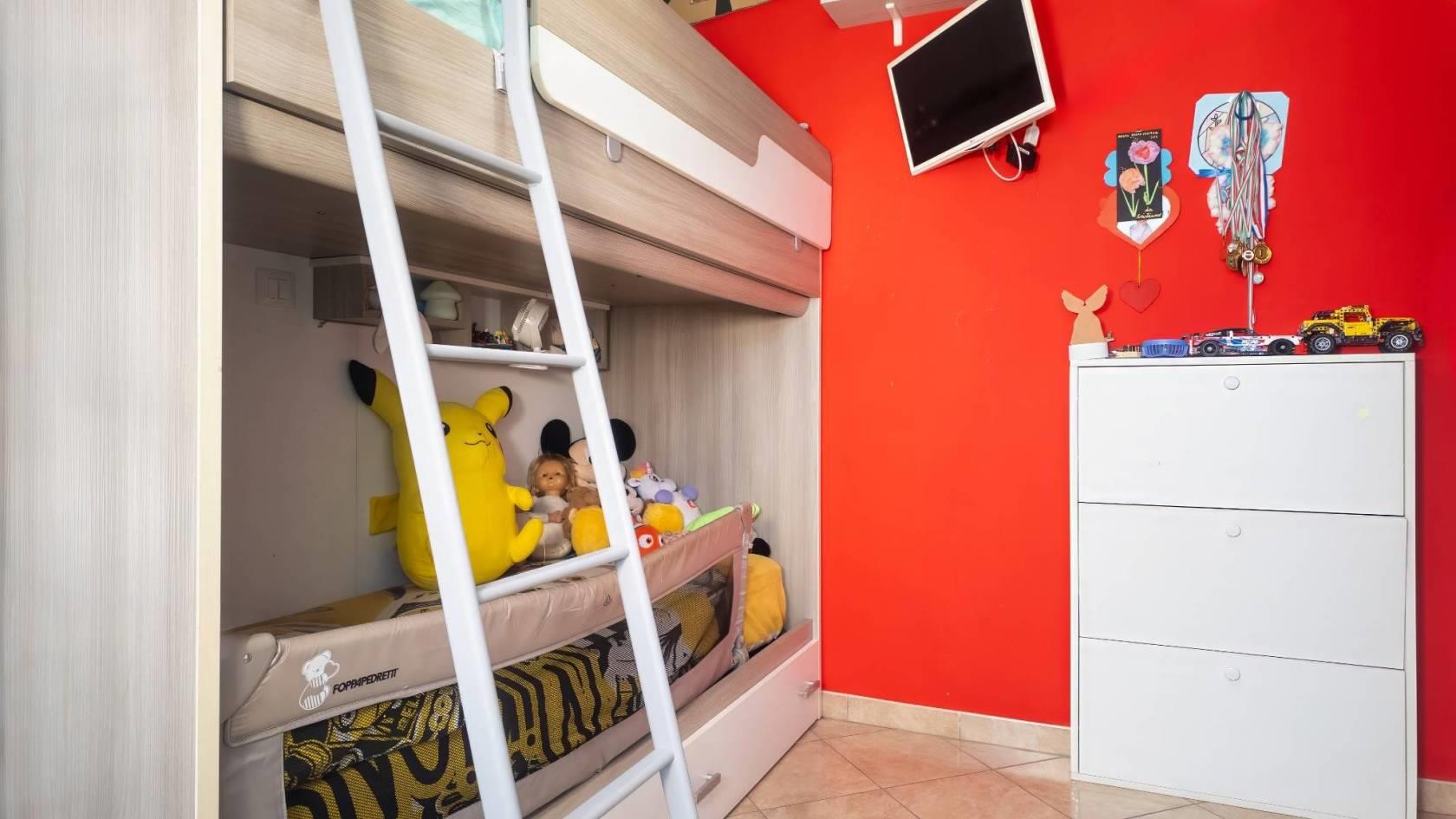 La zona notte comprende una camera matrimoniale ampia e accogliente, una cameretta funzionale ottima da utilizzare come studio o stanza per gli ospiti e due bagni moderni finemente rifiniti, pensati per garantire comfort e praticità.