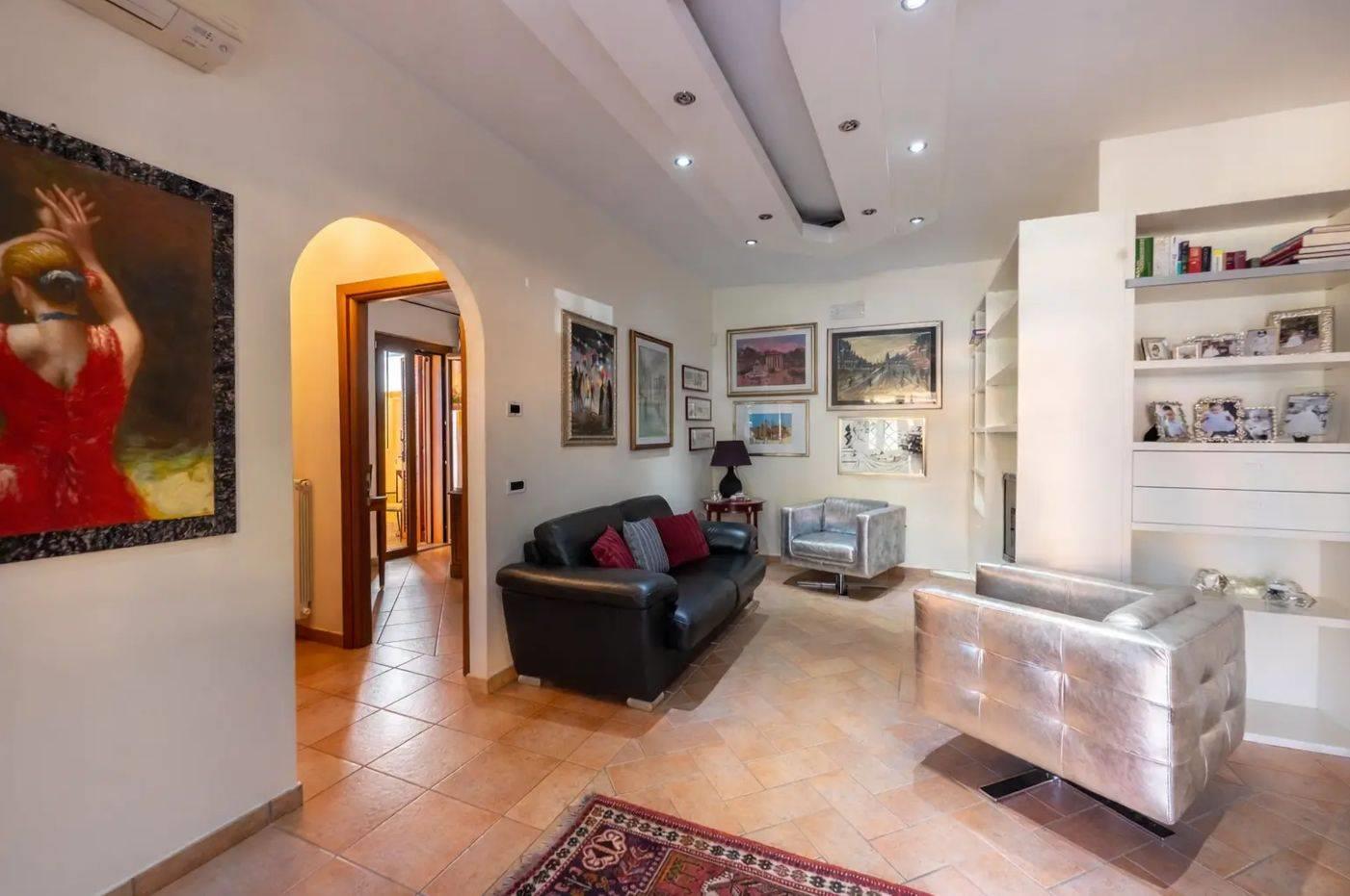 Think Home propone in vendita a Plaestrina, in un contesto residenziale riservato e silenzioso, più precisamente in Via della Ginestra, un ampio ed elegante appartamento di circa 167 mq, con rifiniture di pregio, posto al piano terra di una palazzina di tre piani dotata di ascensore.