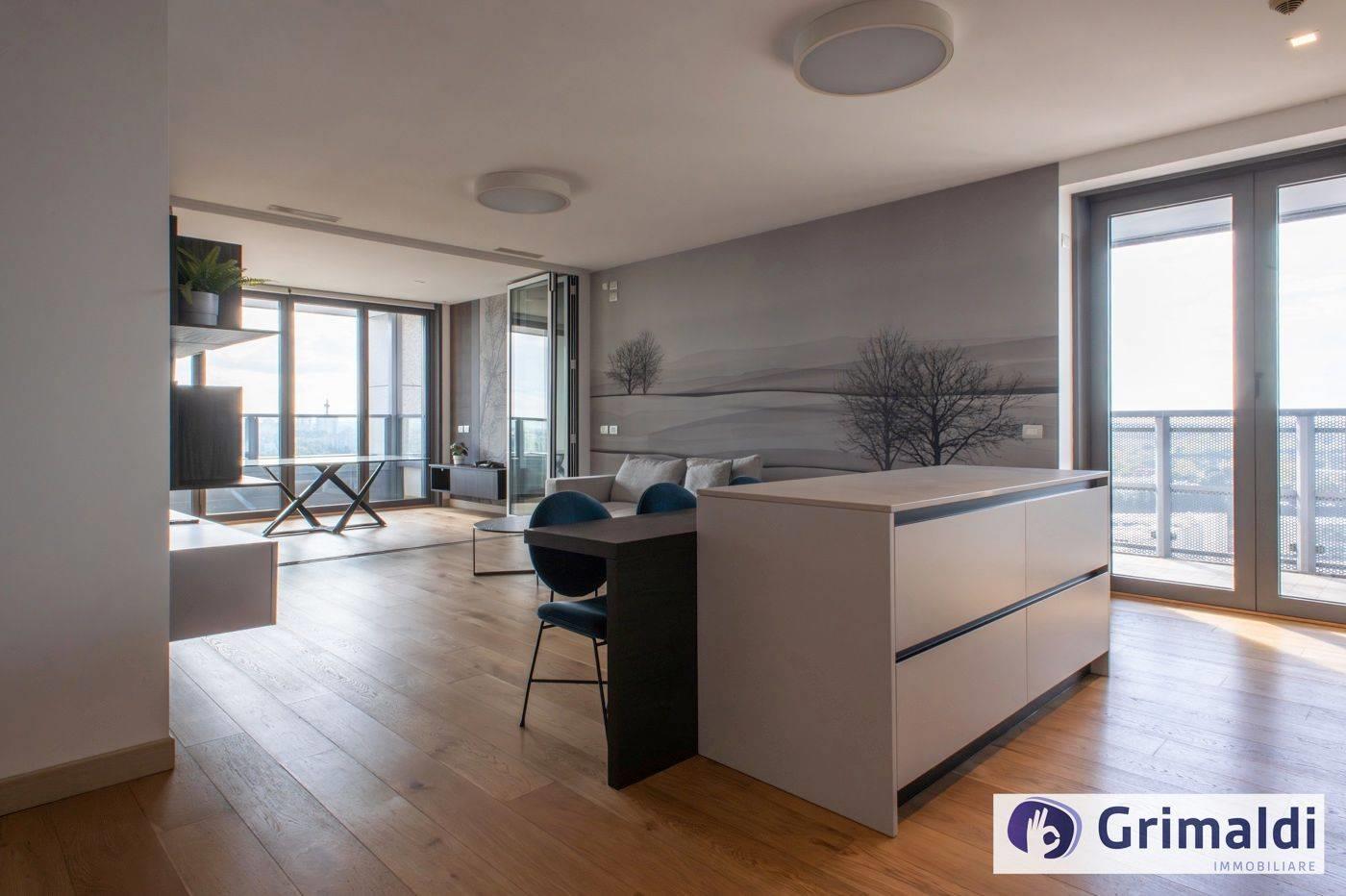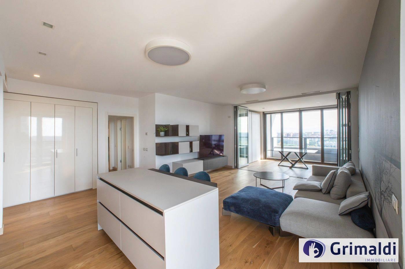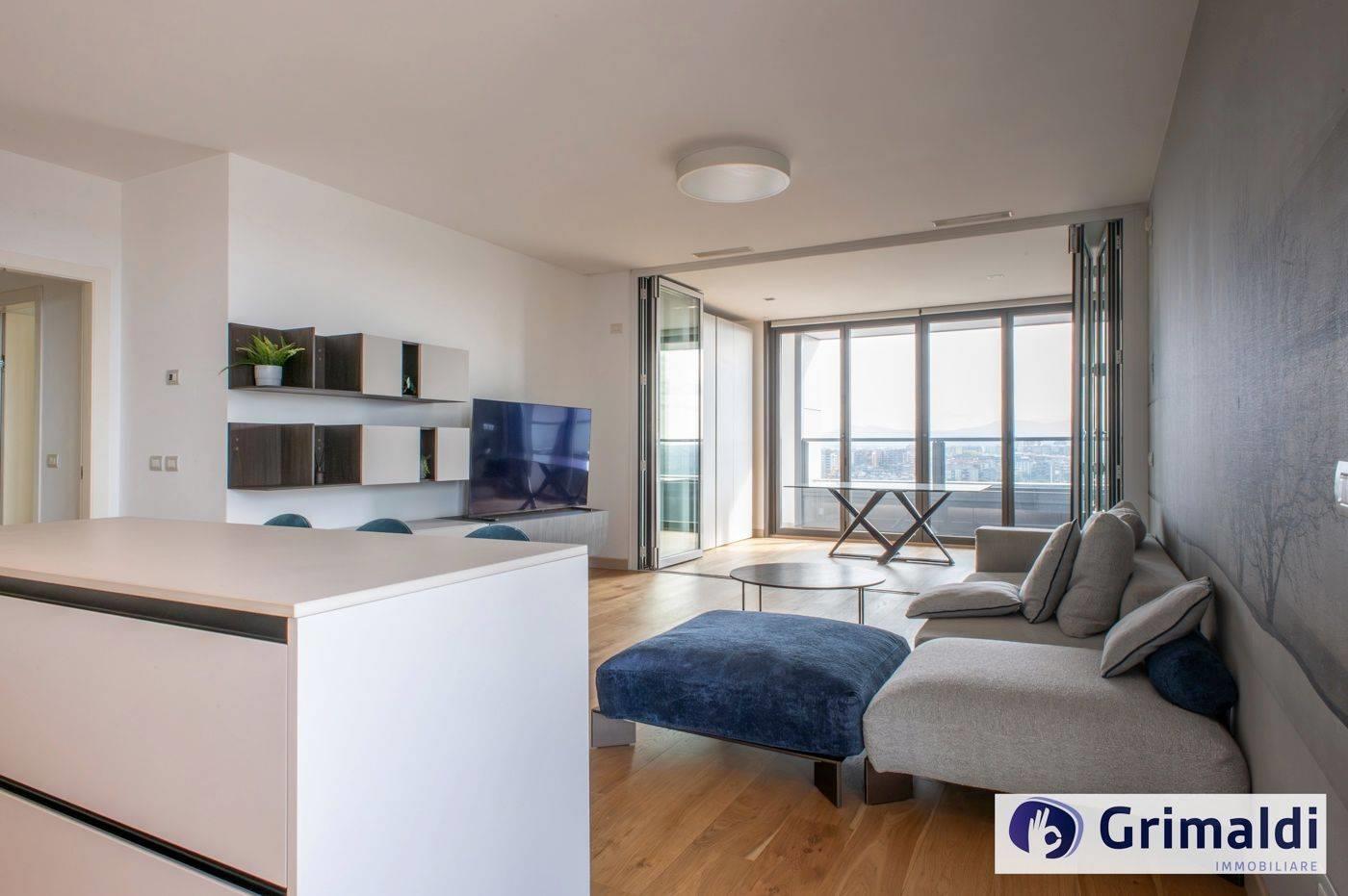 In questo elitario contesto proponiamo la vendita di uno spettacolare, elegante e confortevole appartamento, caratterizzato dalla posizione angolare al 17° piano della Torre e dalla comoda metratura interna data dalla composizione sviluppata su 2,5 moduli.