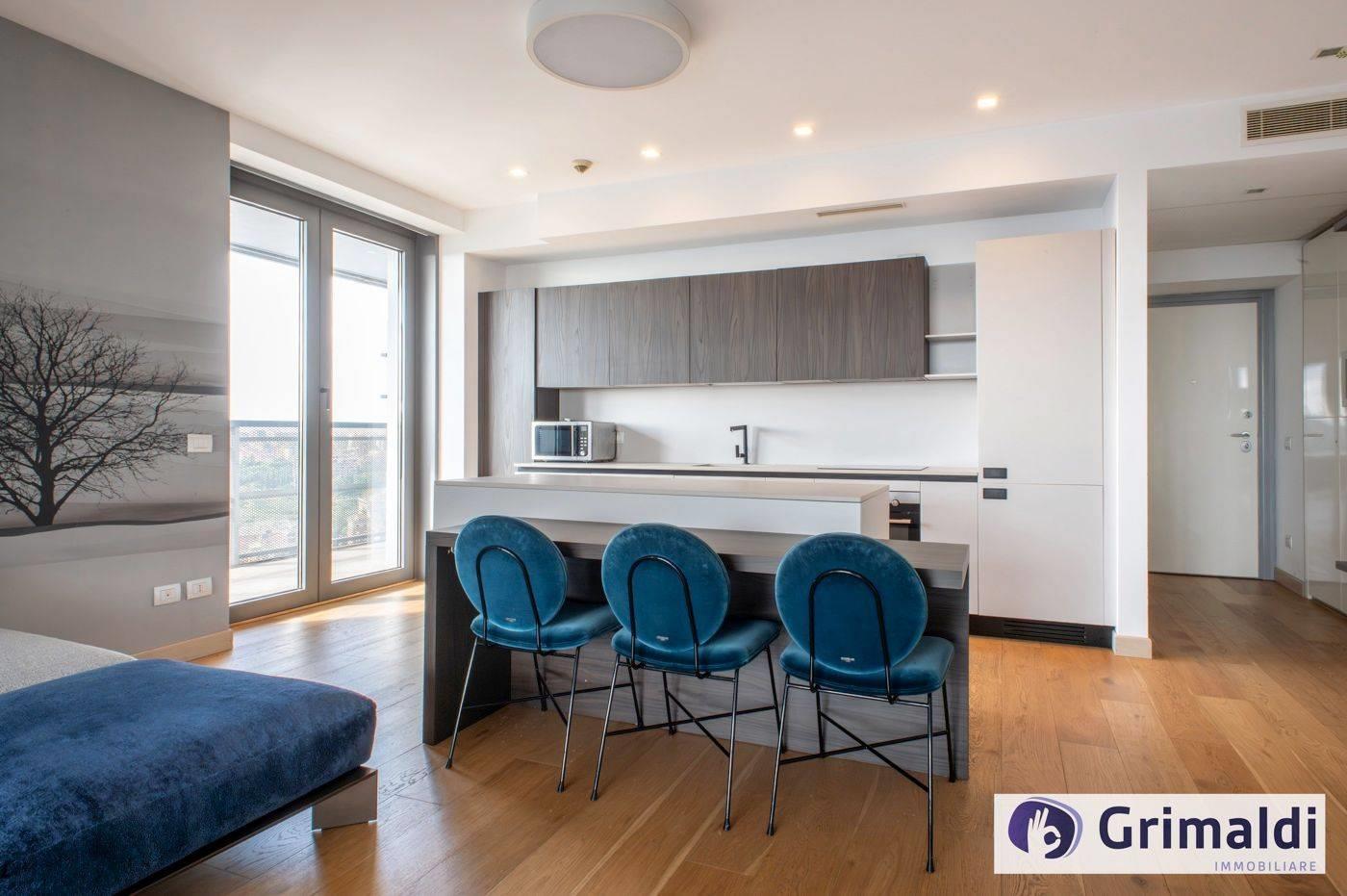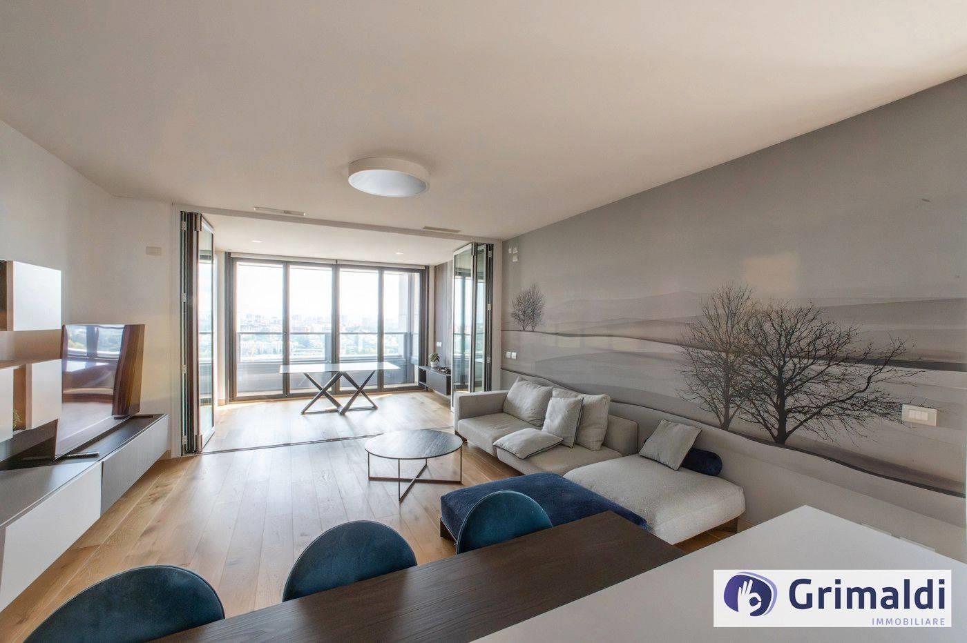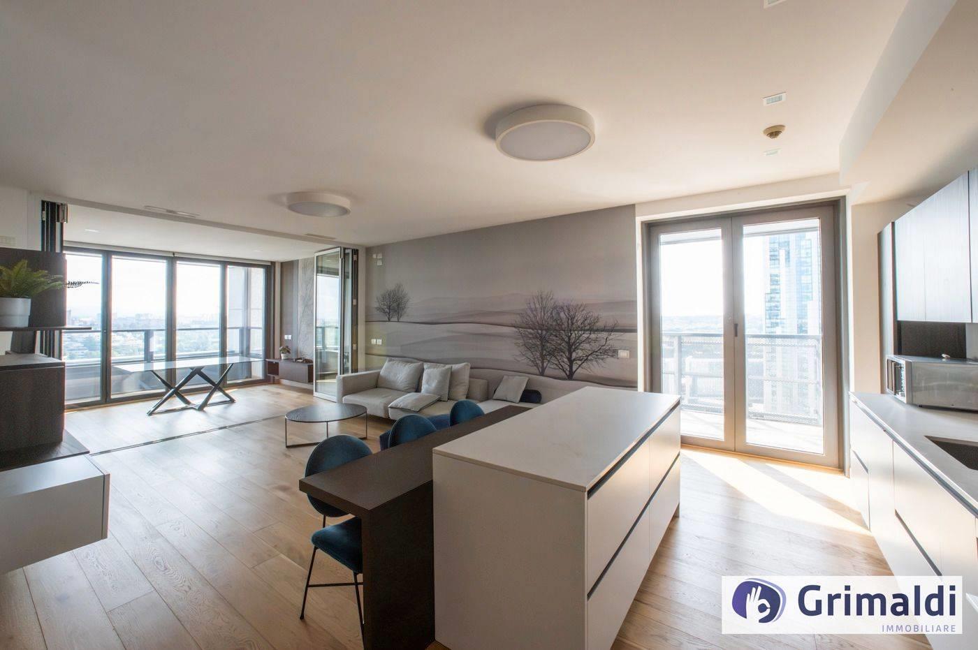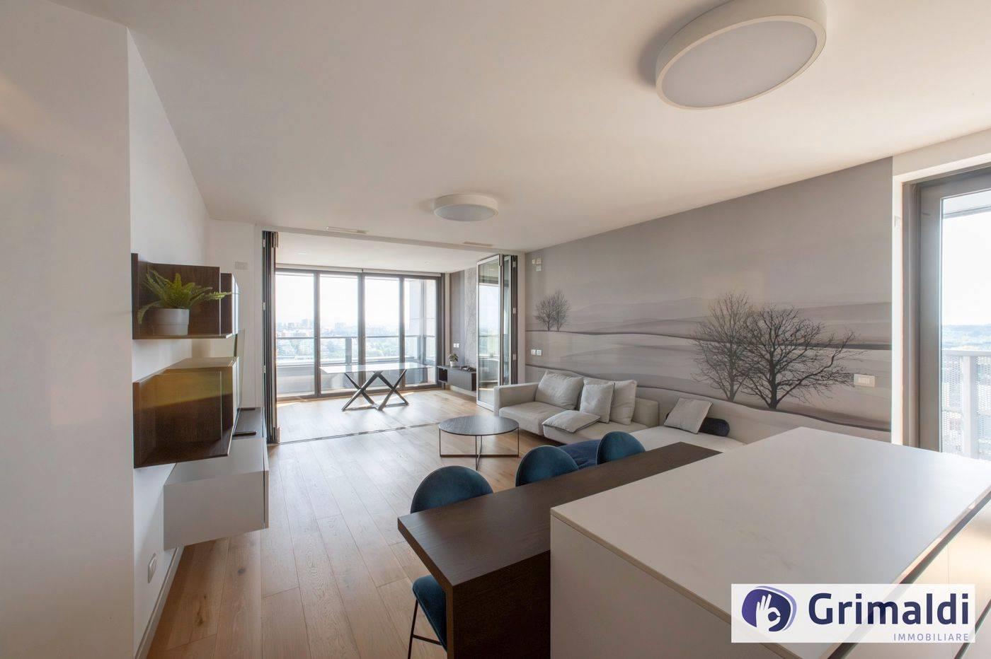 In questo elitario contesto proponiamo la vendita di uno spettacolare, elegante e confortevole appartamento, caratterizzato dalla posizione angolare al 17° piano della Torre e dalla comoda metratura interna data dalla composizione sviluppata su 2,5 moduli.