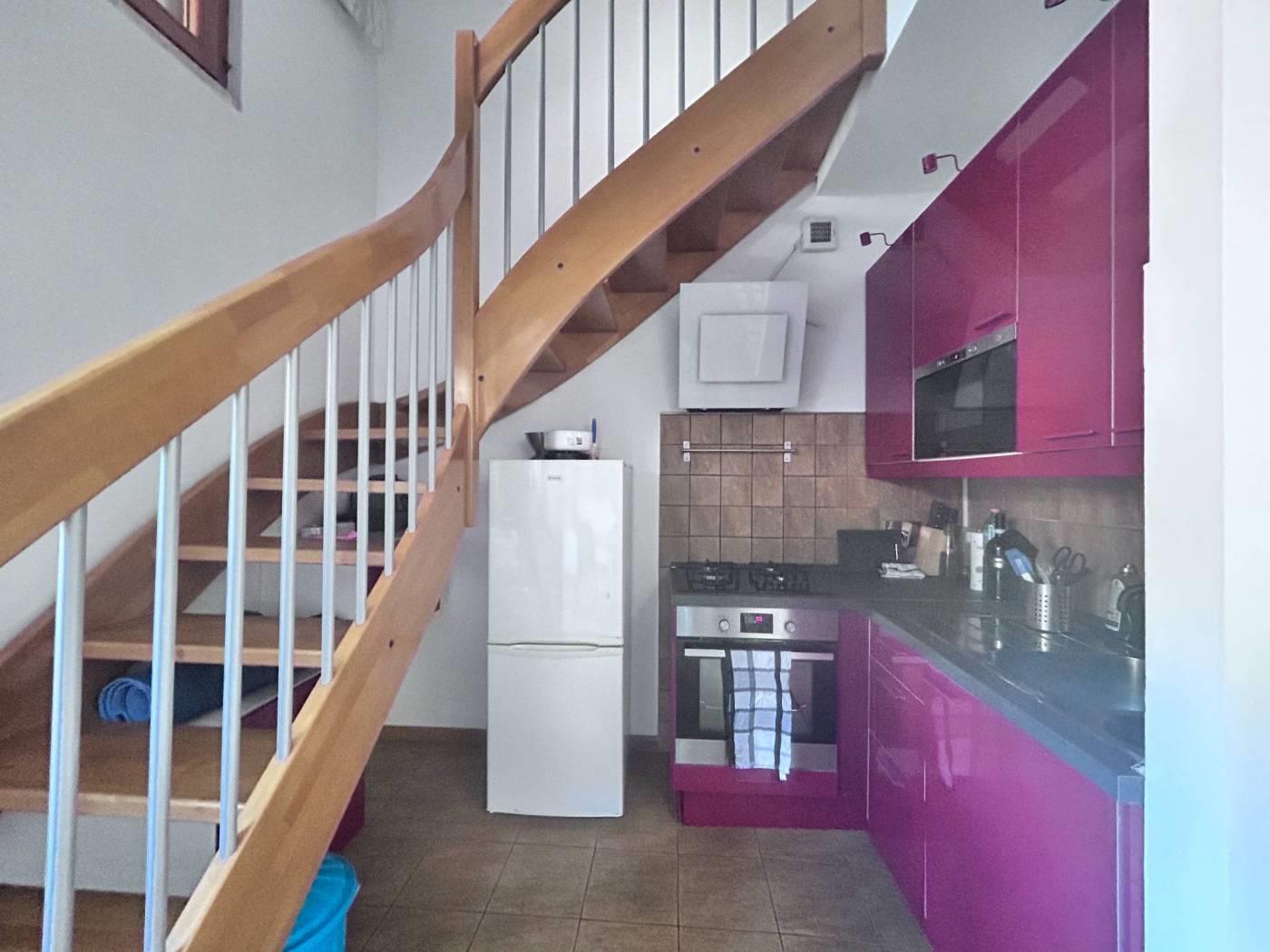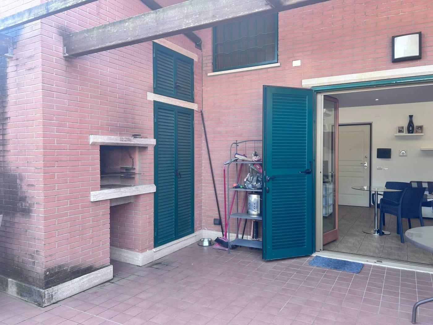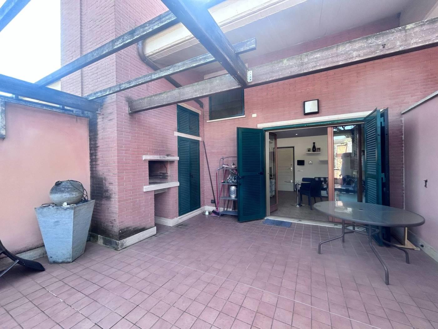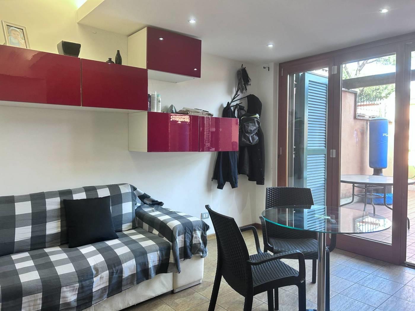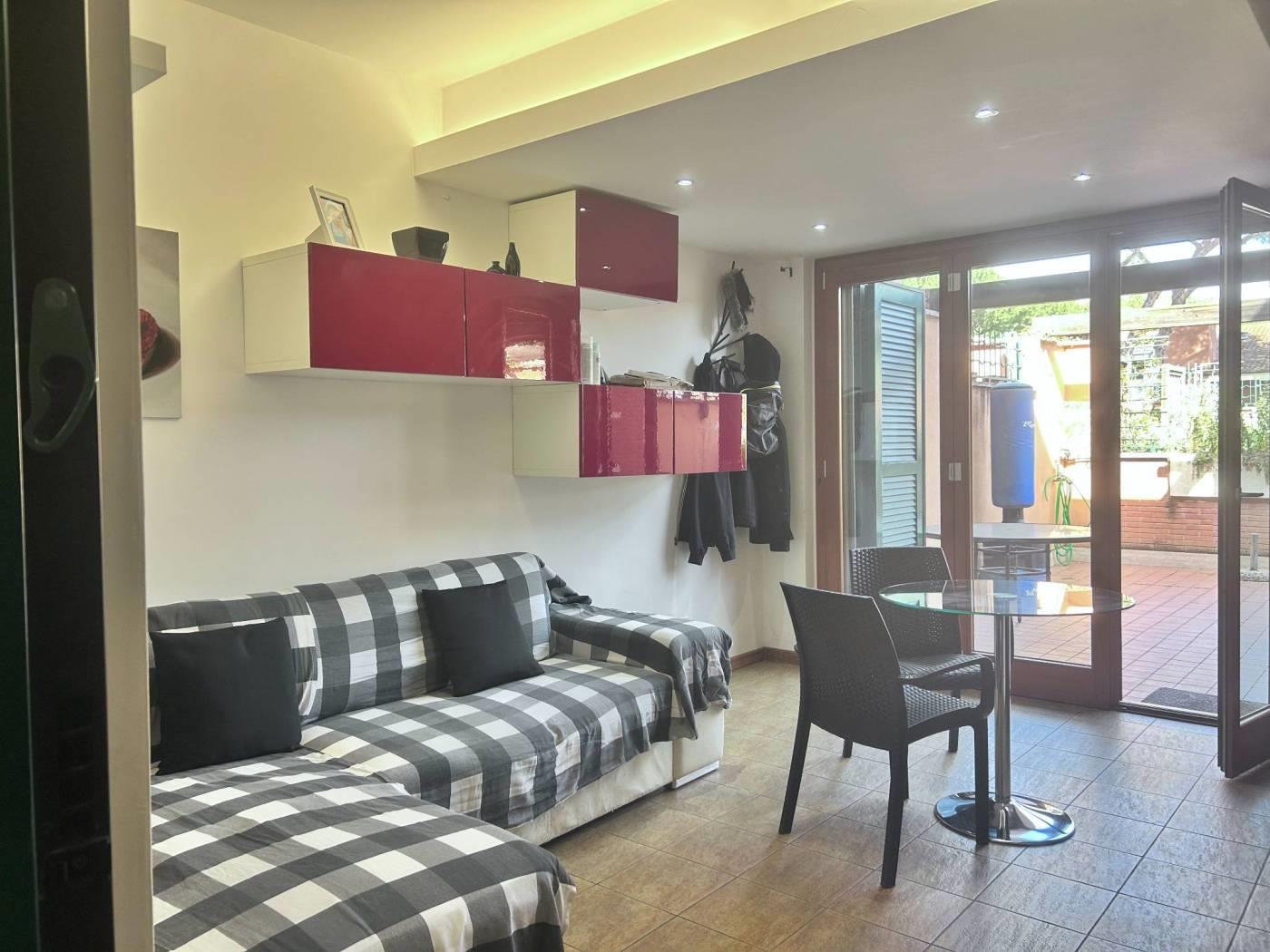 L'immobile di circa 50 mq è così composto : Soggiorno con cucina a vista, zona pranzo e un bagno ospiti. Dalla grande porta finestra del soggiorno, si accede al comodo terrazzo di 24mq abitabile, con barbecue, impianto di irrigazione per le piante e grande ripostiglio con lavatrice.