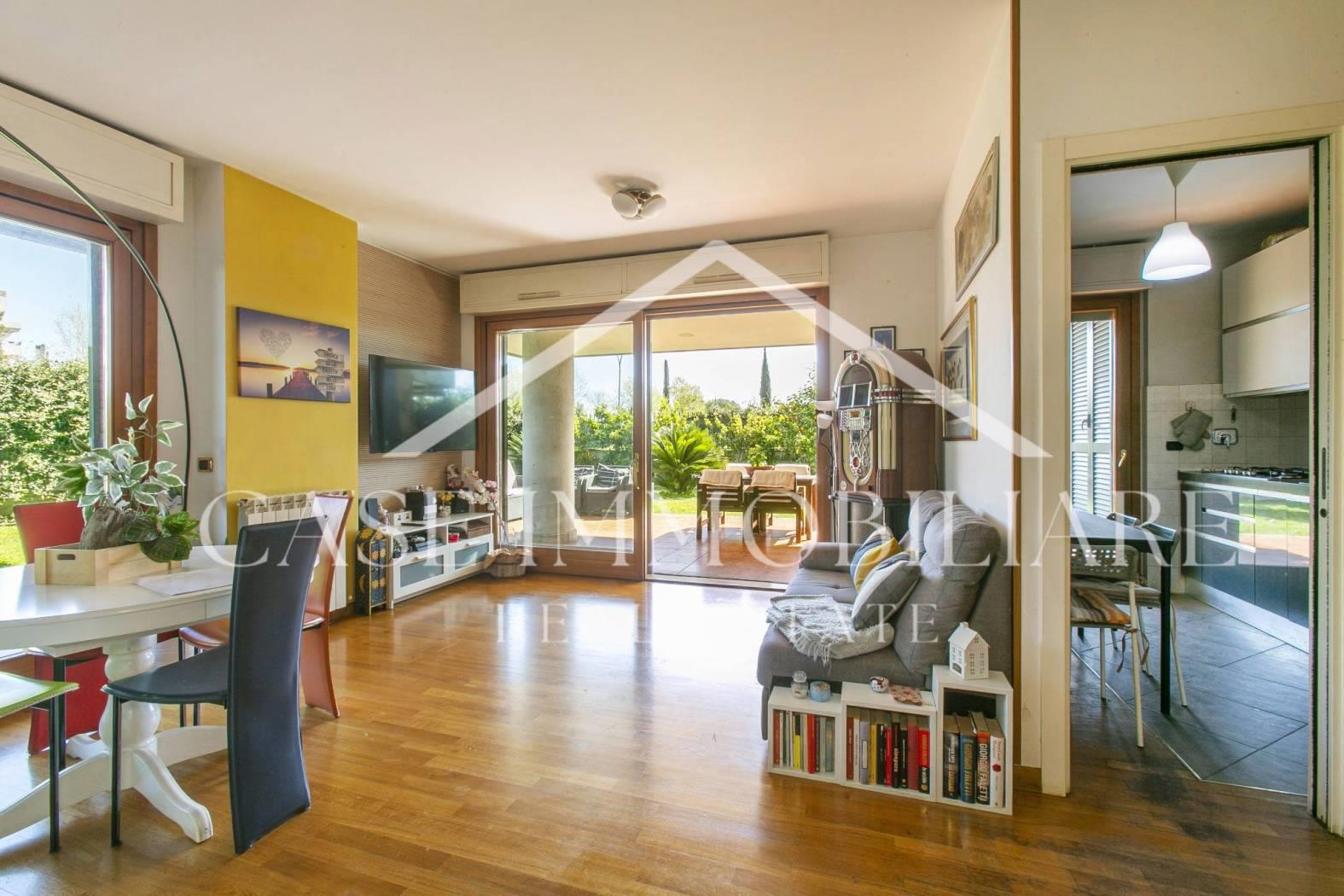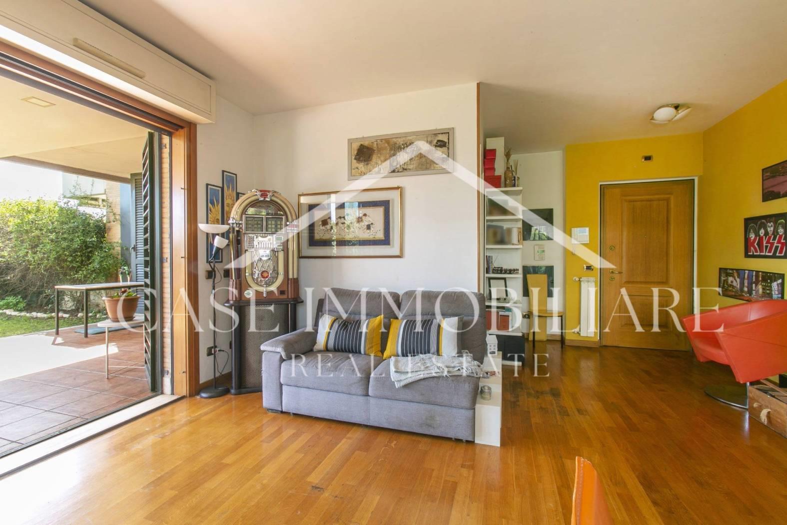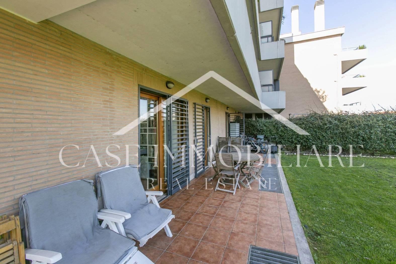 La CASE Immobiliare VENDE in esclusiva, un appartamento con giardino, in zona Parco delle SabinePorta di Roma : il moderno quartiere sorto fra il GRA, via della Bufalotta e Colle Salario, negli anni 2000, precisamente in Via Monte Grimano. Il quartiere è nato con l’idea di creare delle abitazioni con alta resa energetica e totalmente immerse nei parchi condivisi per creare socialità e vita all’aria aperta. La casa, oggetto di vendita, è UNA PIENA PROPRIETA’ ed è ubicato all’interno del prestigioso e signorile complesso di via Monte Grimano, costruito nel 2009, composto da più palazzine, dotato di una grande piscina e di un parco giochi condominiale, ed è ben collegato a servizi, negozi e scuole, offrendo un'ottima qualità della vita. Il trilocale, situato al primo piano e di circa 81 mq, è circondato da un ampio giardino angolare privato di circa 230 mq, perfetto per godere di momenti all’aperto. L’appartamento si apre su un ingresso che conduce a una luminosa zona giorno, suddivisa in zona relax e zona pranzo, caratterizzata da una doppia porta finestra che permette l’accesso diretto al giardino e al portico coperto attrezzato. Sulla destra troviamo la comoda cucina abitabile con uscita diretta al giardino, mentre sulla sinistra abbiamo la zona notte, ove troviamo due confortevoli camere da letto oltre a due bagni: uno con doccia ed uno attualmente smontato ed utilizzato come studio. L’immobile, acquistato direttamente dal costruttore, si presenta in ottime condizioni. È pronto per essere abitato fin da subito, senza necessità di interventi. Sono state aggiunte anche alcune migliorie, come la predisposizione per realizzare una veranda sotto il portico aumentando la vivibilità della zona giorno. L’appartamento è dotato di infissi in legno con doppi vetri e grate antisfondamento, pavimento in parquet, tapparelle elettriche, porta blindata. Il riscaldamento è autonomo, alimentato da una caldaia a condensazione recentemente sostituita, climatizzazione di tipo canalizzato che assicurano efficienza e comfort in tutte le stagioni. Il sistema di irrigazione automatica facilita la manutenzione del giardino, videocitofono. Il giardino è attrezzato con barbecue, armadiature in ferro e spazio dedicato per la lavatrice esterna. I costi condominiali ammontano a 144€ al mese (fra condominio e super condominio). Completa la proprietà una cantina di 4 mq asciuttissima, un posto auto in autorimessa coperta di 13 mq. Per ulteriori informazioni contattare Case Immobiliare di Serena Di Ienno Via Tuscania 13-00191 Roma Tel. 06.89935159 info@case-immobiliare.com www.case-immobiliare.com Hai talento nel settore immobiliare o sogni di averne? Invia il tuo CV a: info@case-immobiliare.com ed entra a far parte della nostra Famiglia! Abbiamo posizioni aperte per Agenti Immobiliari e Consulenti Immobiliari anche senza esperienza per la nostra sede. Siamo una realtà dinamica, fortemente presente nei quartieri Fleming, Ponte Milvio, Prati e Parioli, ma operativa con successo su tutto il territorio nazionale. Invia adesso la tua candidatura a: info@case-immobiliare.com ed inizia il tuo percorso con Case Immobiliare fino a diventarne Socio. La nostra agenzia CASE immobiliare in via Tuscania 13, zona Flaminia/Fleming, è a vs disposizione per assistervi nella VENDITA-AFFITTO di immobili residenziali e commerciali. I nostri servizi: VALUTAZIONE GRATUITA - COMPRAVENDITE - LOCAZIONE - REGISTRAZIONE CONTRATTI E PRELIMINARI - APE (certificazione energetica) - CONSULENZA NOTARILE, LEGALE e TECNICA