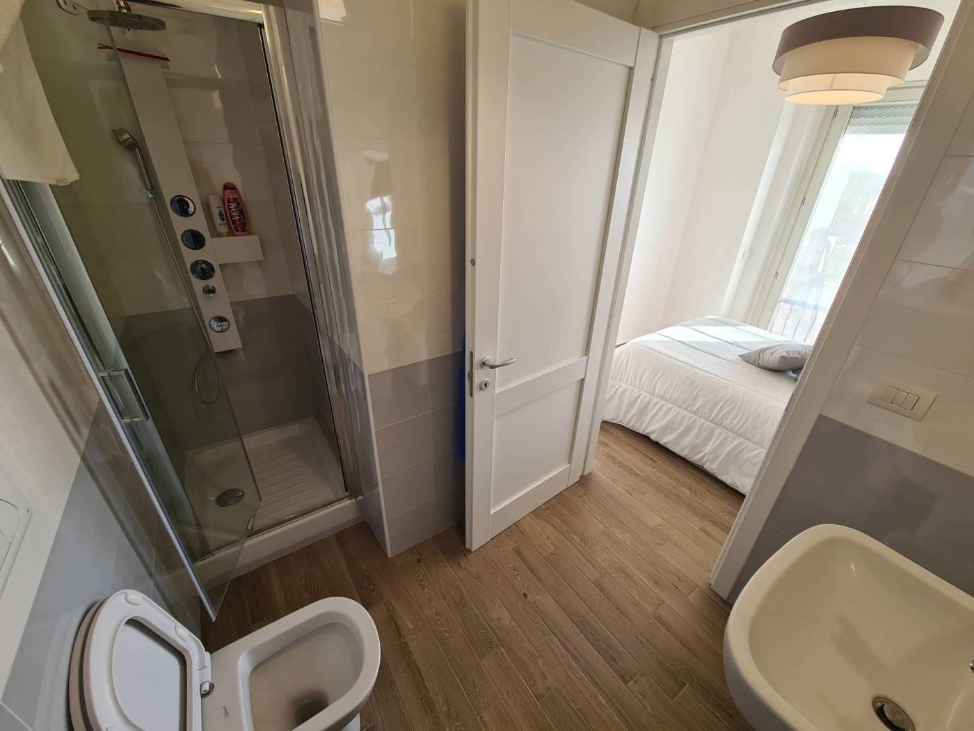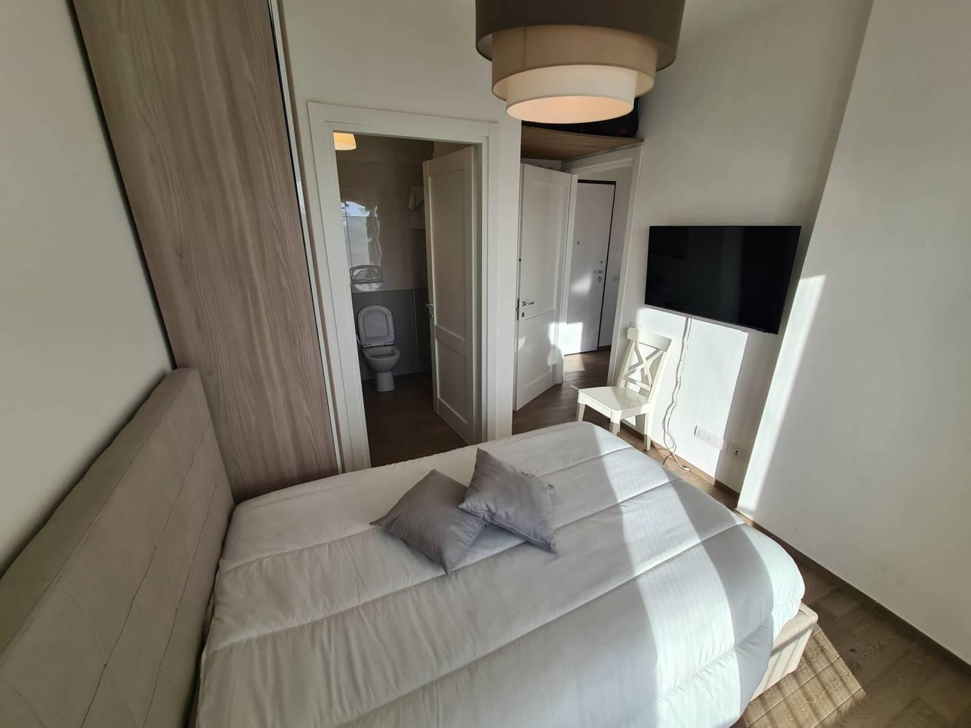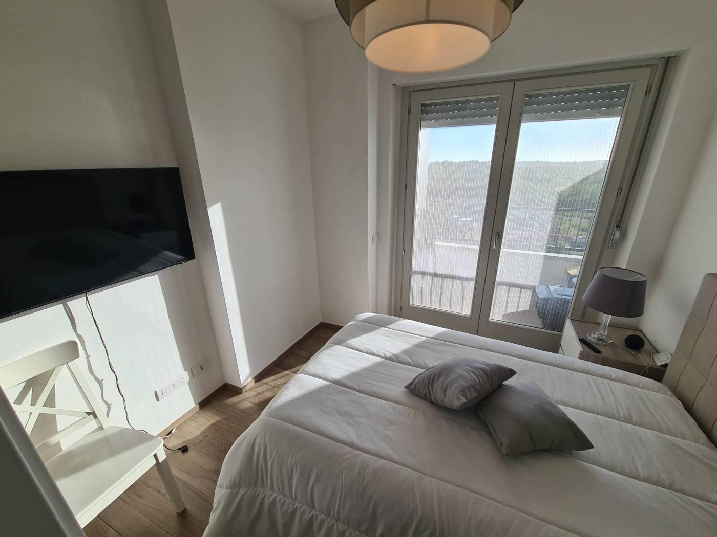L'appartamento è composto da ingresso nel soggiorno con angolo cottura, una camera da letto e un bagno con cabina doccia, il terrazzo sono circa 10mq con vista panoramica.