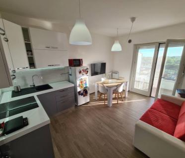 Parco Leonardo, bright apartment for sale, in a curtain, free, never inhabited. Elegant district, high floor. Entrance, living room, one bedroom, kitchen, bathroom, large terrace, utility room, covered parking space.