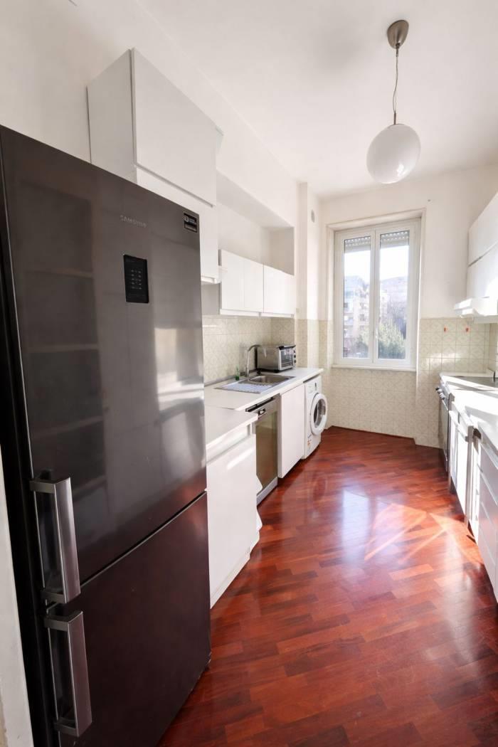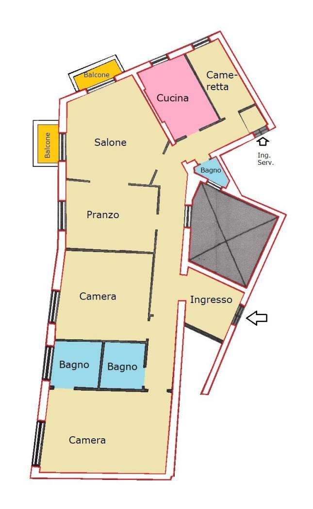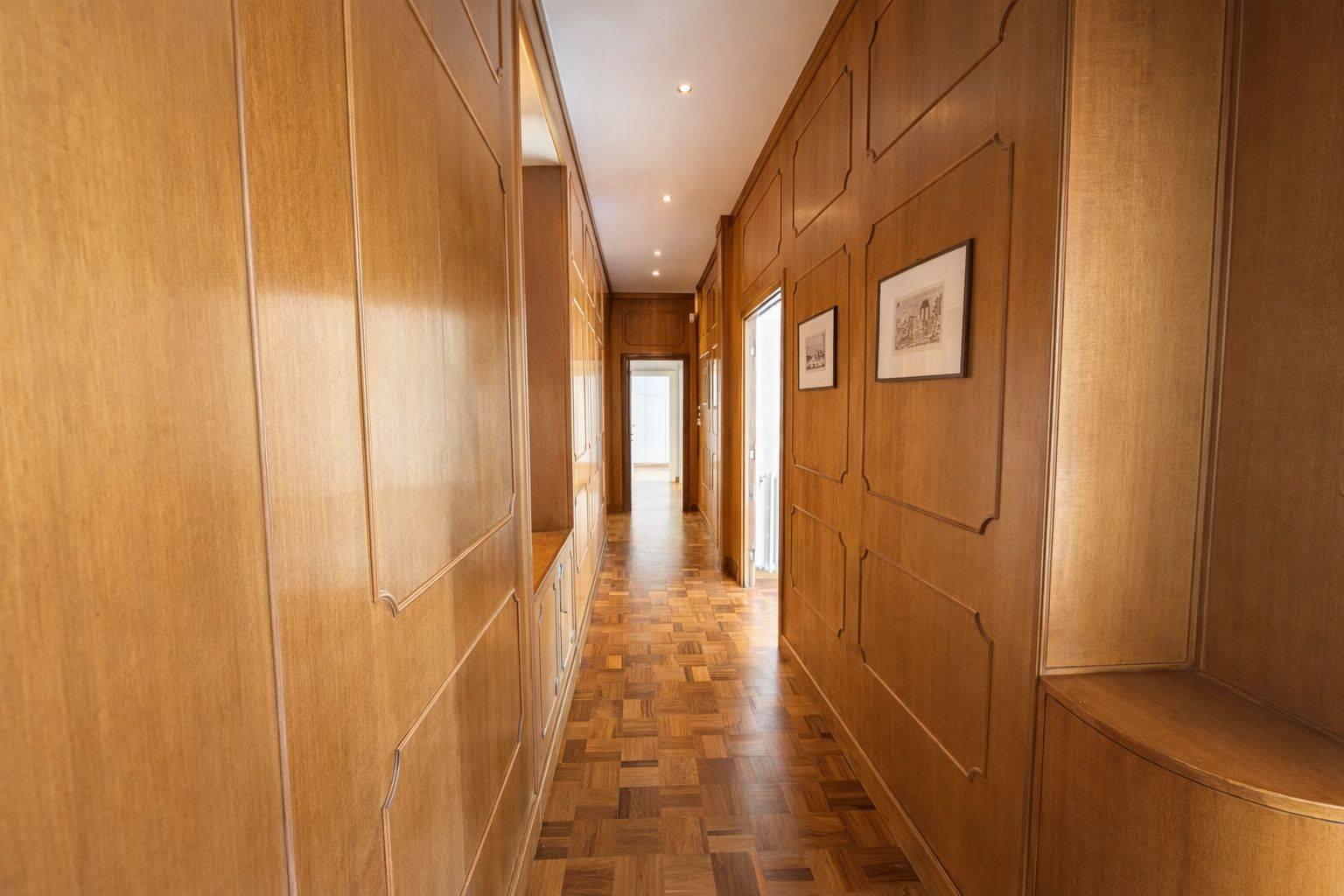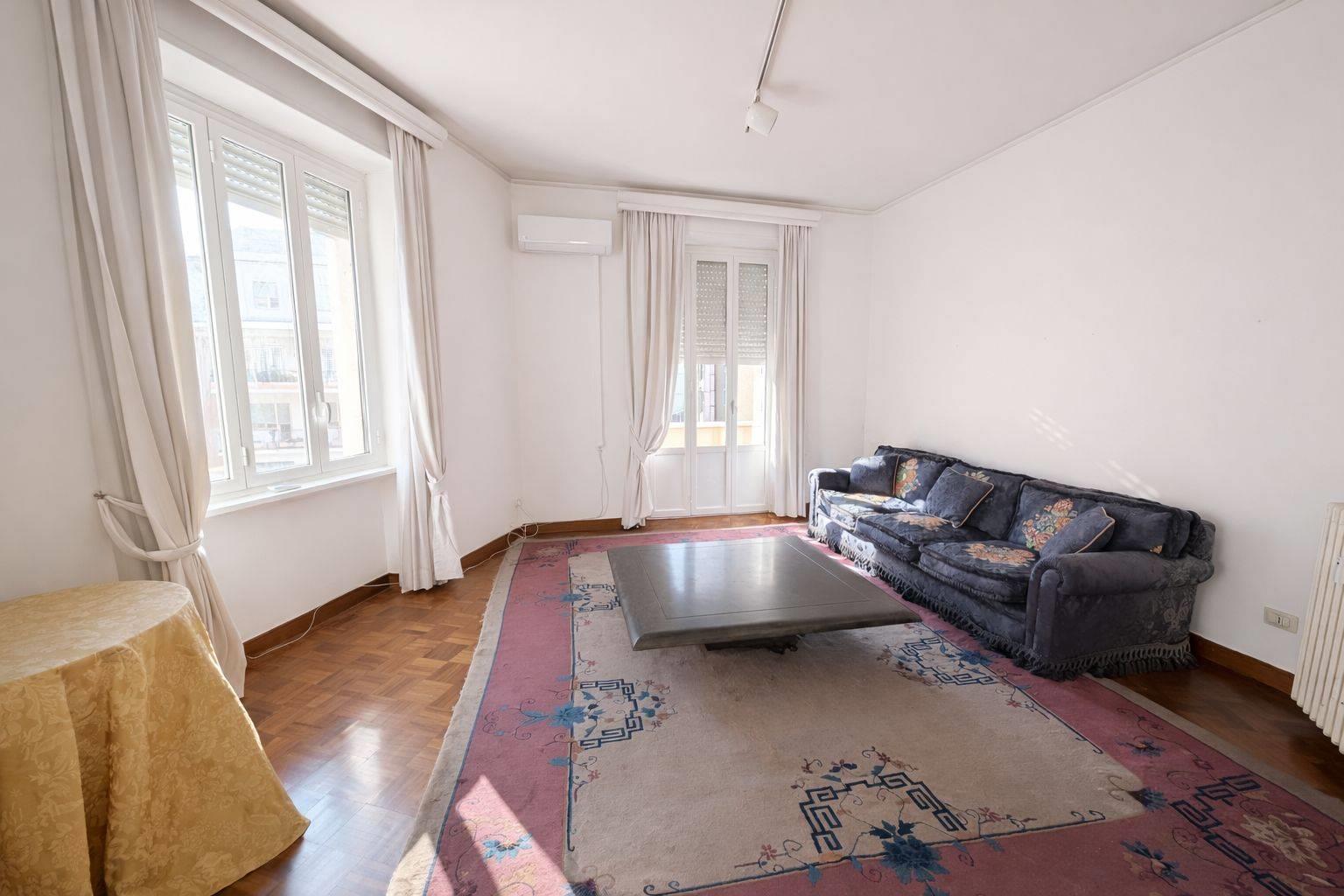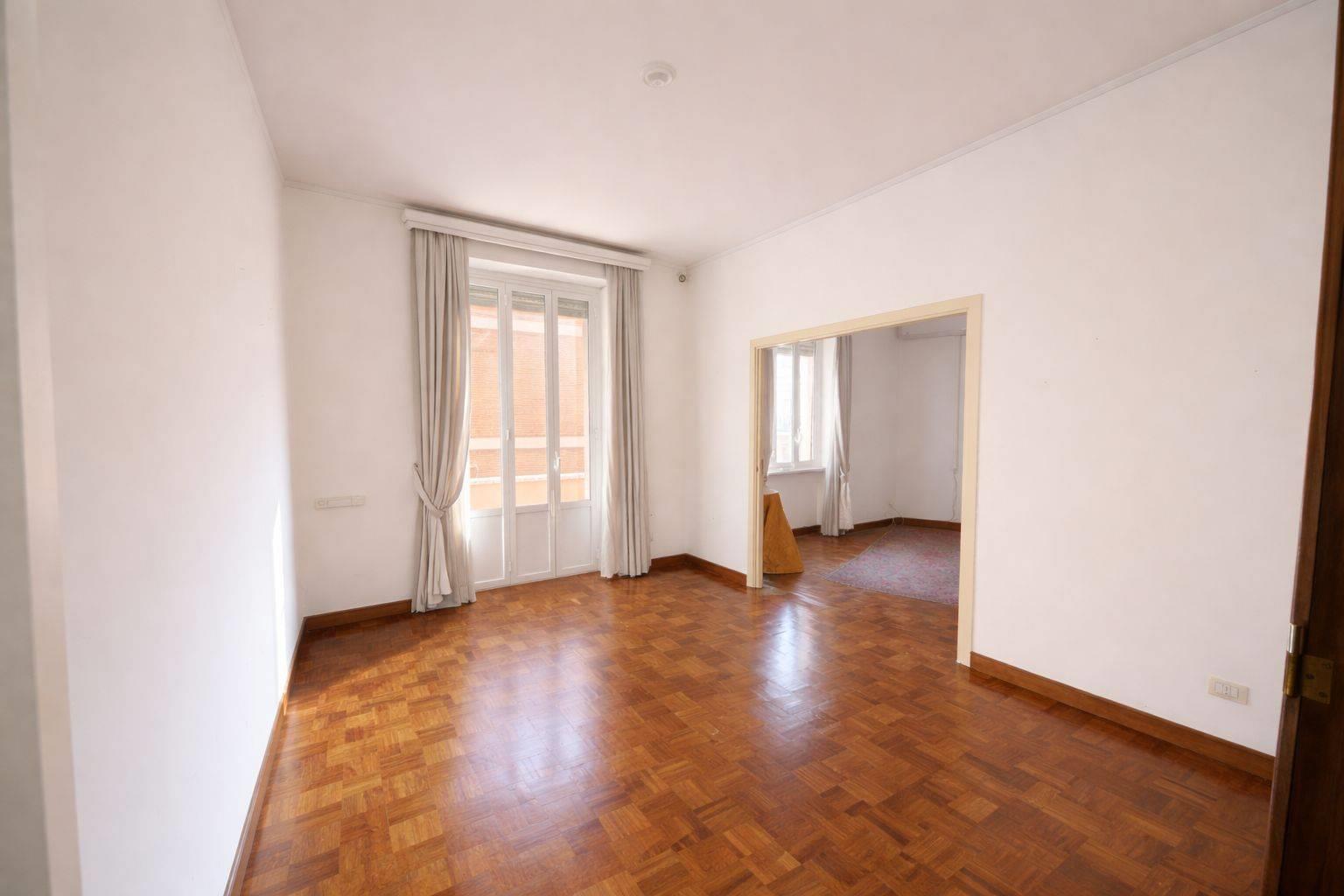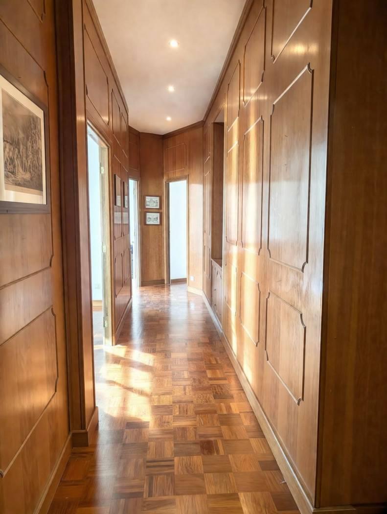 L’appartamento sviluppa una superficie di circa 160 mq e si distingue per ambienti ampi e ben distribuiti. L’ampio ingresso ed il corridoio di collegamento con i diversi ambienti della casa sono entrambi rifiniti con una elegante boiserie in legno; internamente l'appartamento è costituito da tre zone funzionalmente ben distinte: una zona di rappresentanza divisa in due ambienti, salone e sala da pranzo con due balconi; una zona notte costituita da due ampie camere con due bagni e una zona di servizio con una comoda cucina completa di elettrodomestici, una cameretta ed un piccolo bagno. Completa la proprietà una cantina al piano seminterrato.
