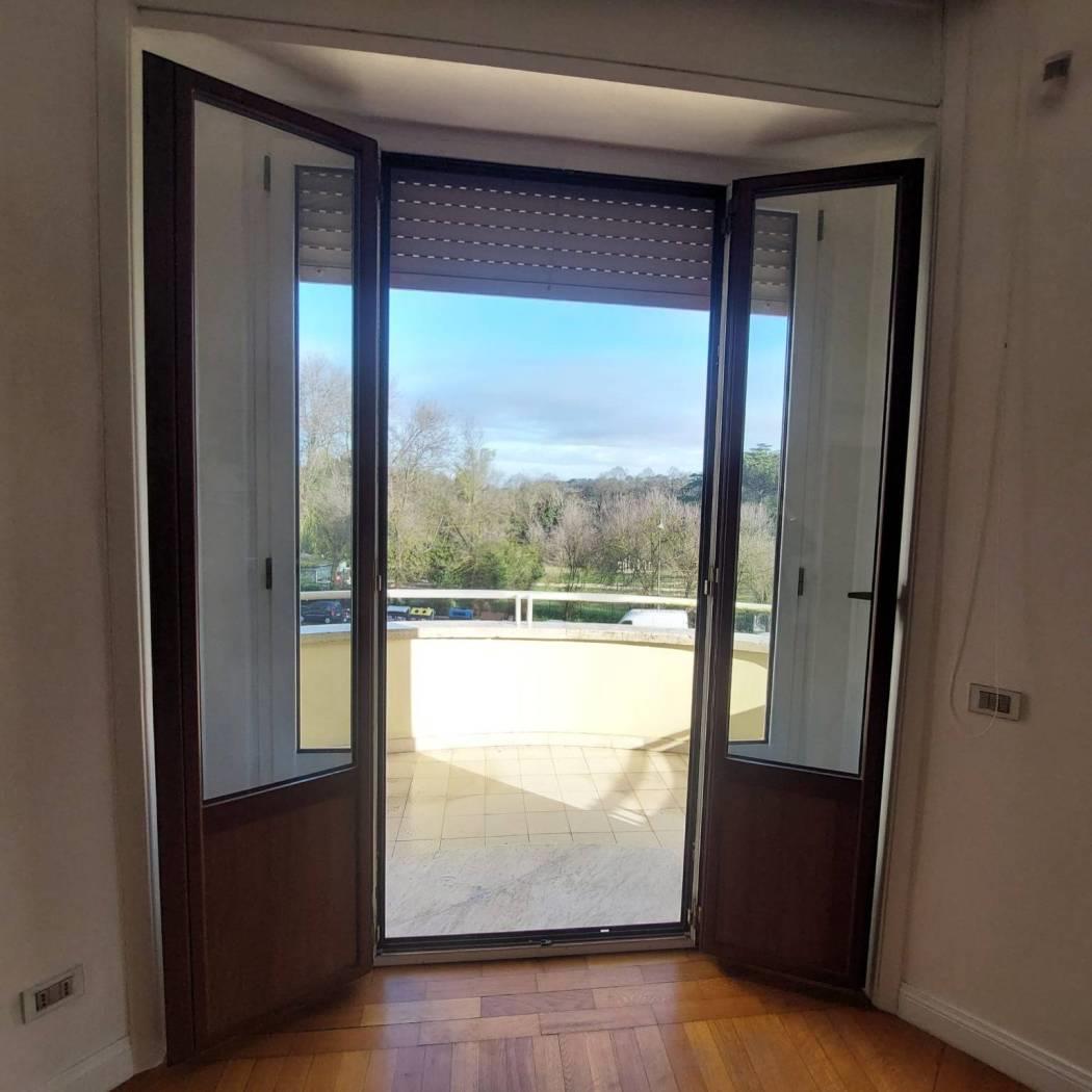 Un ampio ingresso che conduce alla zona di rappresentanza, composta da un salone doppio luminoso, dotato di un balcone con vista su Villa Ada, una sala da pranzo ed uno studio, quest’ultimo utilizzabile anche come camera degli ospiti, entrambi comunicanti con il soggiorno.