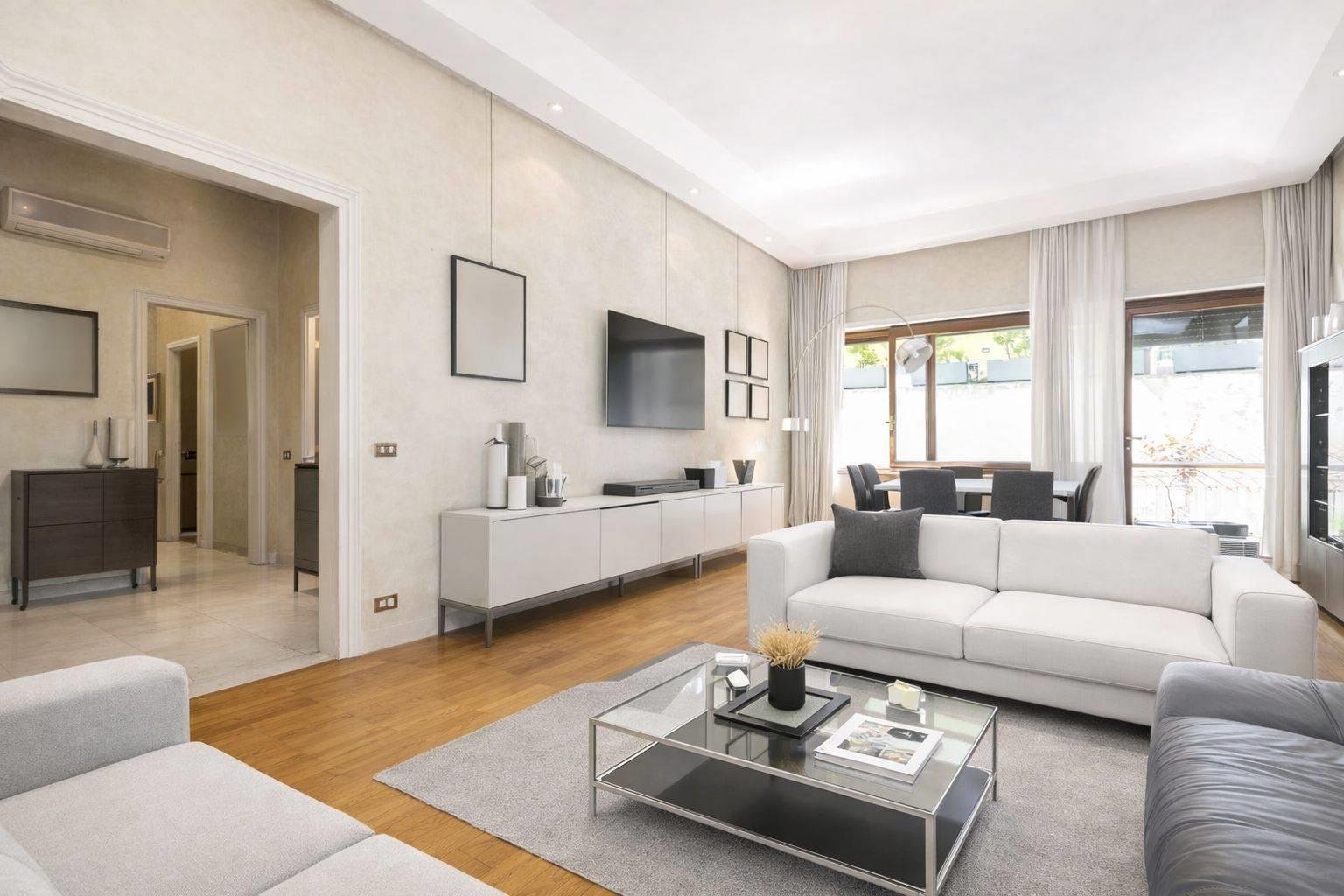 Vendesi in Via Archimede, nella parte più elegante e riservata verso Via San Valentino, appartamento di circa 140 mq in stabile signorile con servizio di portineria. L’immobile, caratterizzato da ambienti ampi e luminosi, si apre su un ingresso che conduce a un salone doppio con due balconi. La disposizione interna comprende due camere da letto, uno studio facilmente trasformabile in terza camera, cucina abitabile e due bagni. Completano la proprietà una comoda cantina e la possibilità di un box auto.Alcune immagini proposte hanno carattere illustrativo e rappresentano una possibile ipotesi di ristrutturazione. Il Riscaldamento è centralizzato con contabilizzazione. Contesto silenzioso e di pregio, a pochi passi dai servizi e dalle principali arterie dei Parioli.