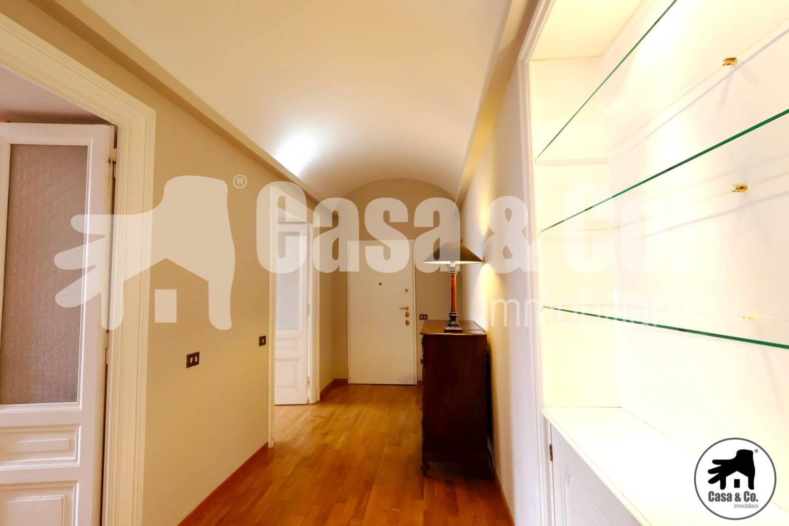 L’ingresso si apre su un ampio corridoio che conferisce respiro e armonia alla distribuzione degli ambienti, accompagnando con naturale eleganza verso i diversi spazi della casa. La disposizione interna, equilibrata e funzionale, garantisce una perfetta distinzione tra area giorno e zona notte, assicurando comfort e privacy. L’appartamento ha due camere da letto (una delle quali con bagno in camera), entrambe spaziose e silenziose; un elegante soggiorno con accesso dal corridoio d’ingresso offre un ambiente di rappresentanza rilassante e di grande vivibilità. Le camere, con affaccio S-W e ampio distacco dai fabbricati vicini, hanno una eccezionale luminosità.
