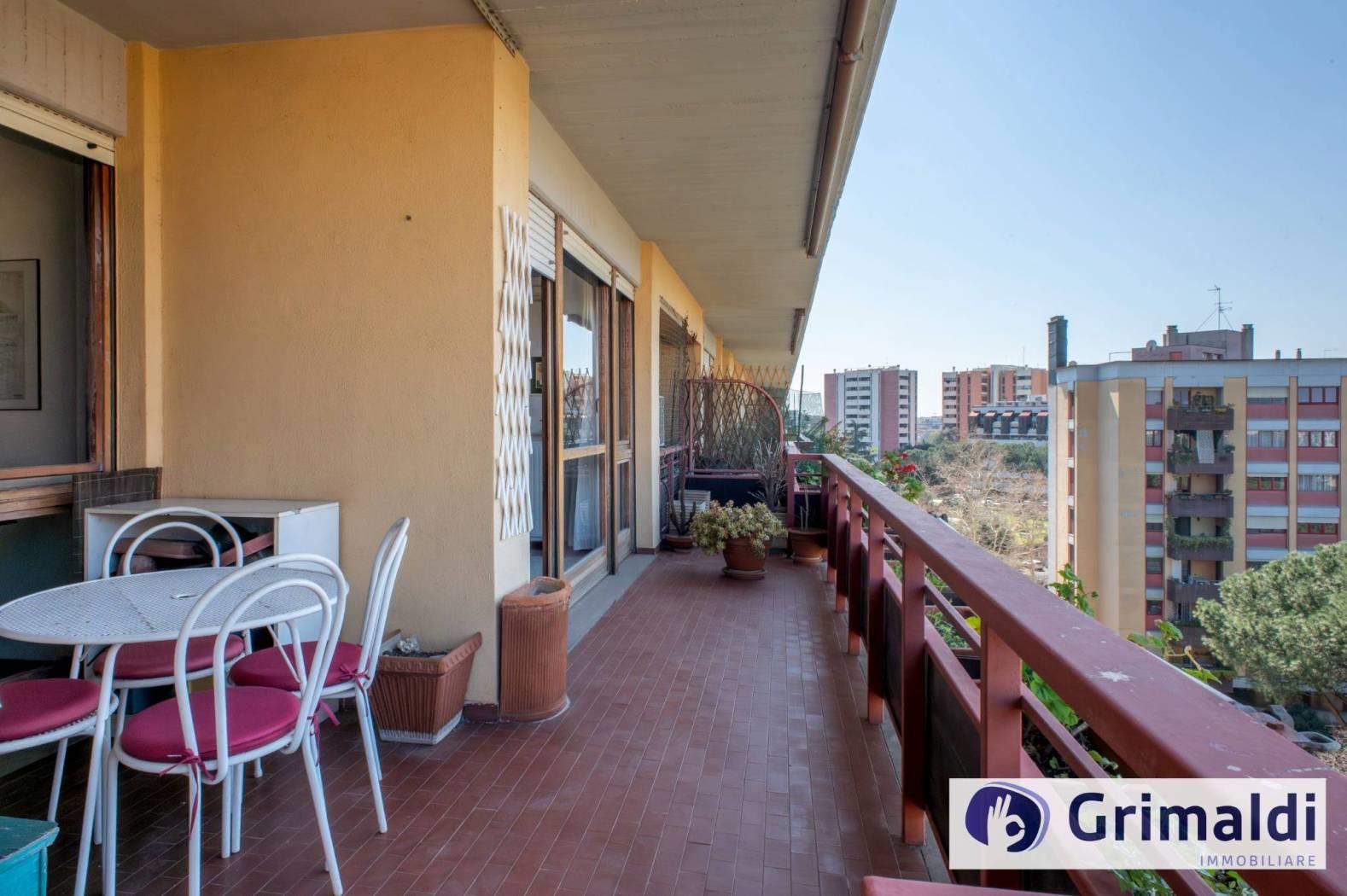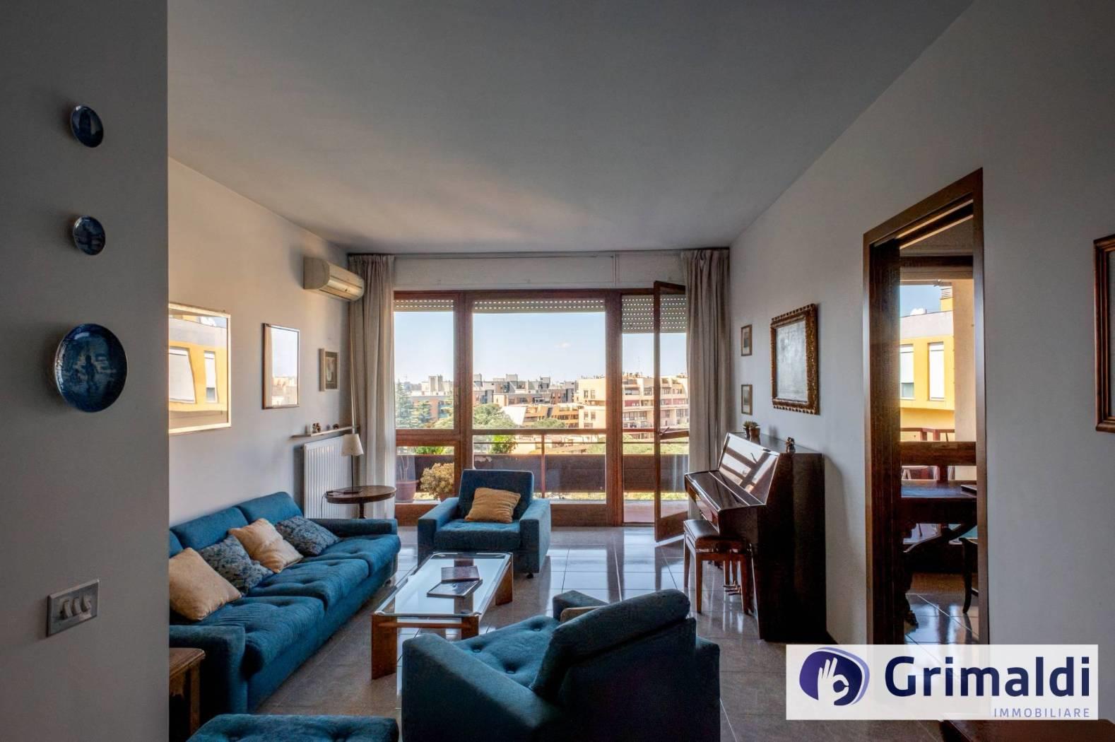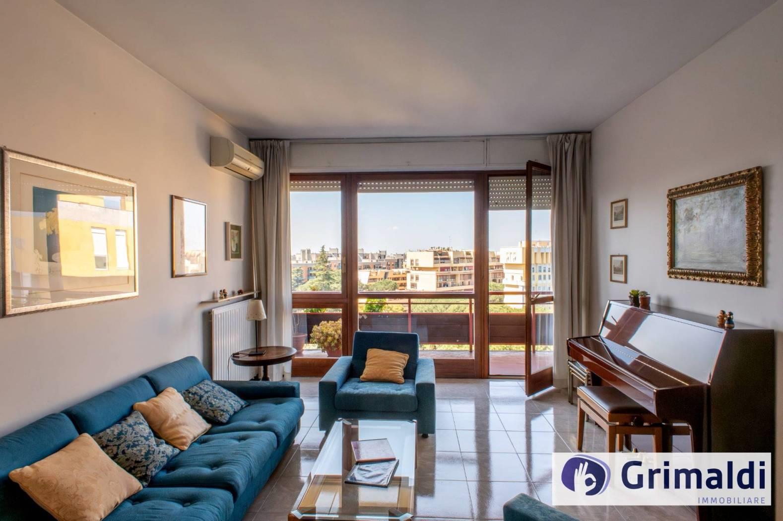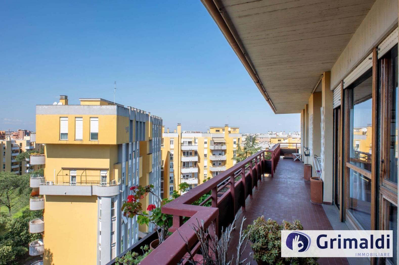 Roma 70, quartiere residenziale nella zona urbanistica di Grottaperfetta e più precisamente in via Learco Guerra proponiamo in vendita un importante appartamento di ampia metratura in posizione particolarmente favorevole per la mobilità cittadina e per la presenza di tutti i principali servizi. L’immobile, posto all’ottavo ed ultimo piano di una palazzina dotata di ascensore e giardini condominiali, è internamente suddiviso in modo funzionale in ingresso, salone doppio con uscita sul balcone terrazzato panoramico, cucina servita da balcone, disimpegno, tre grandi camere da letto, cameretta, due bagni entrambi con finestra. L’appartamento, che con doppia esposizione parallela gode di un’ottima luminosità in tutti gli ambienti della casa, si presenta in buone condizioni. Il prezzo richiesto di euro 420.000,00 comprende anche l’acquisto di una cantina e di un posto auto coperto. Ce G Ipe 117,91 kWh/m2 anno. Per maggiori informazioni e prenotazione visite contattare il numero 0649776023, un nostro consulente sarà a Vostra disposizione.