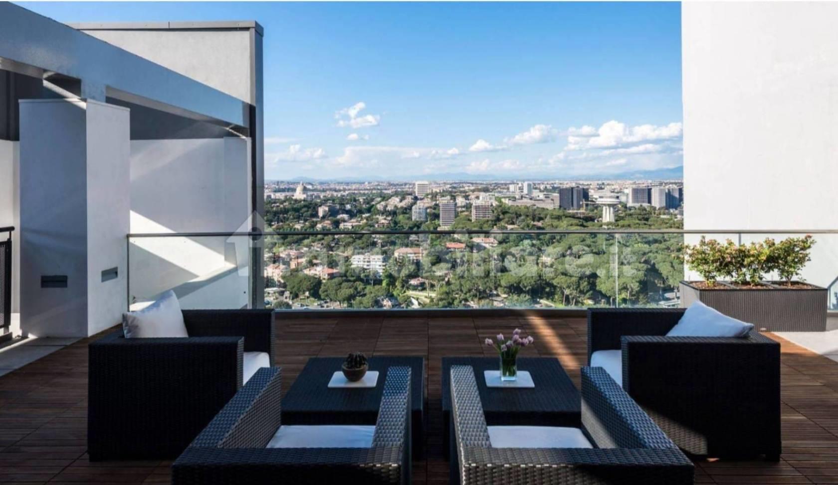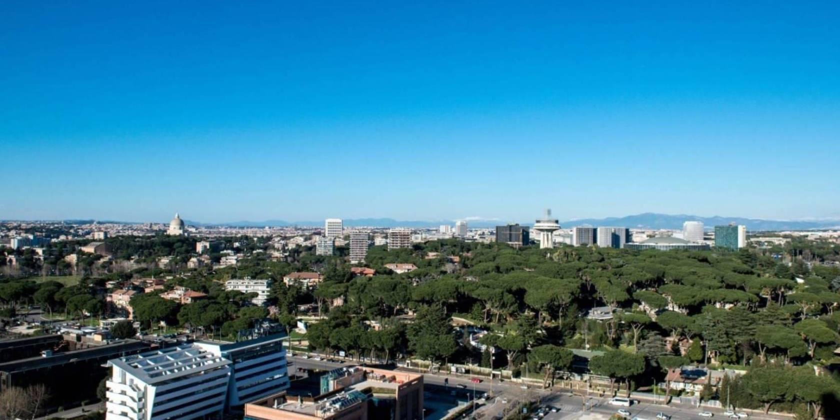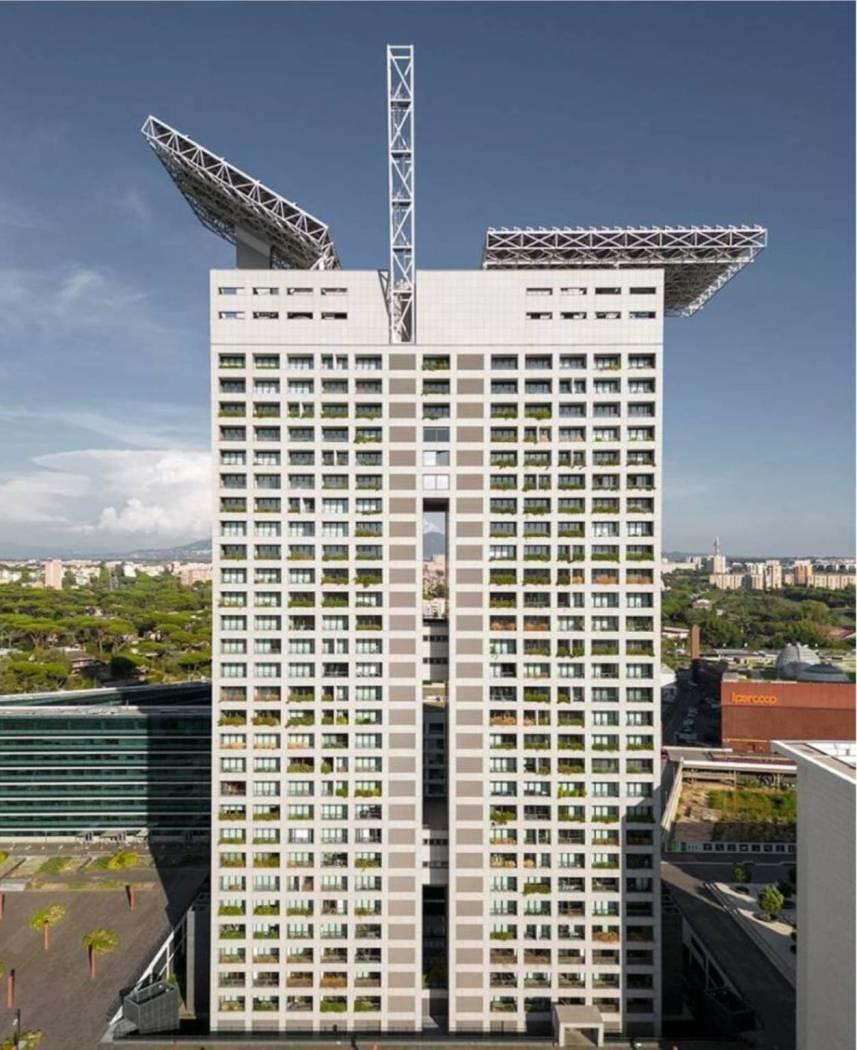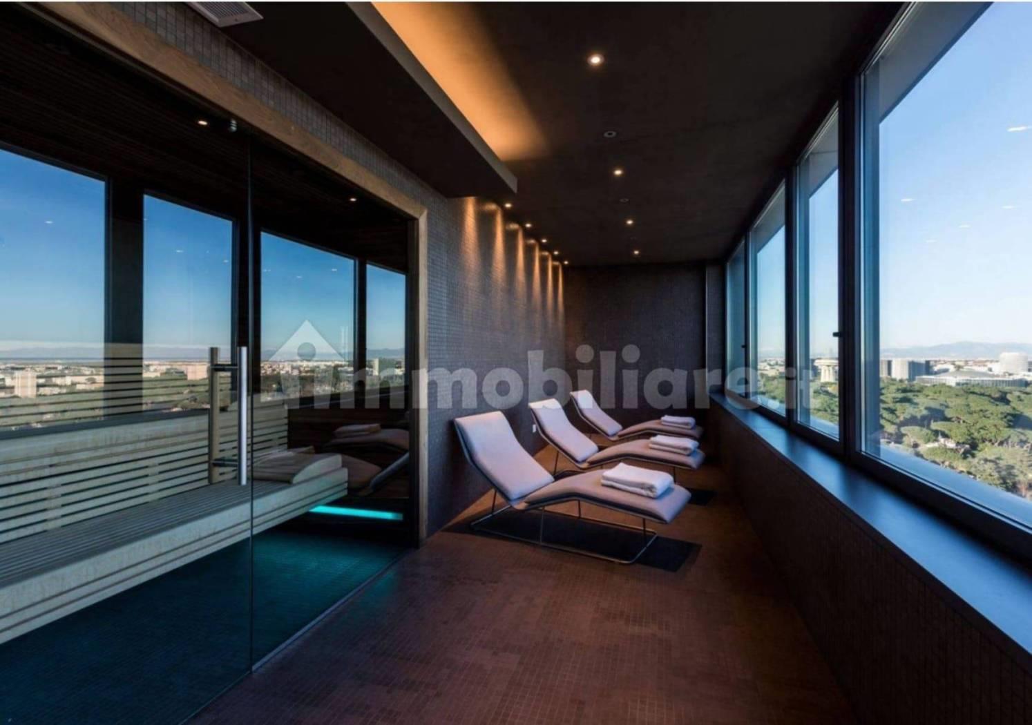 All'interno del grattacielo, ampi spazi comuni e servizi destinati a divenire un esclusivo punto di ritrovo per i residenti di Eurosky Tower ed i loro ospiti: la sala cinema prenotabile privatamente, l'area lounge attrezzata con comode sedute ed un lungo fronte vetrato con vista panoramica, ottimo spazio per feste private, roof garden con spettacolare vista su Roma, parco giochi in quota, inoltre l'area SPA/Fitness, la più alta d'Italia, con una facciata completamente a vetri dove sarà possibile godere di un meraviglioso panorama e fare fitness con i più innovativi e tecnologici macchinari Technogym e rilassarsi nello spazio SPA, con sauna e bagno turco, un tempio del benessere innovativo ed elegante. L'edificio è dotato di reception H24, videosorveglianza, multi ascensori, pannelli fotovoltaici, raccolta dell'acqua piovana e raccolta pneumatica dei rifiuti al piano e locale lavanderia.