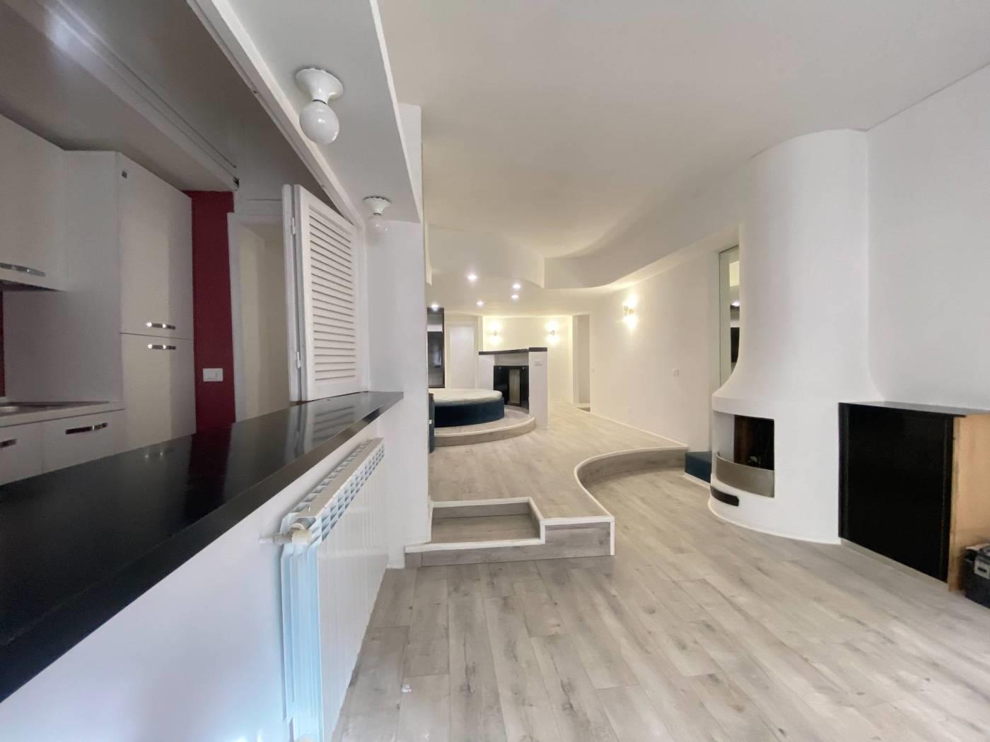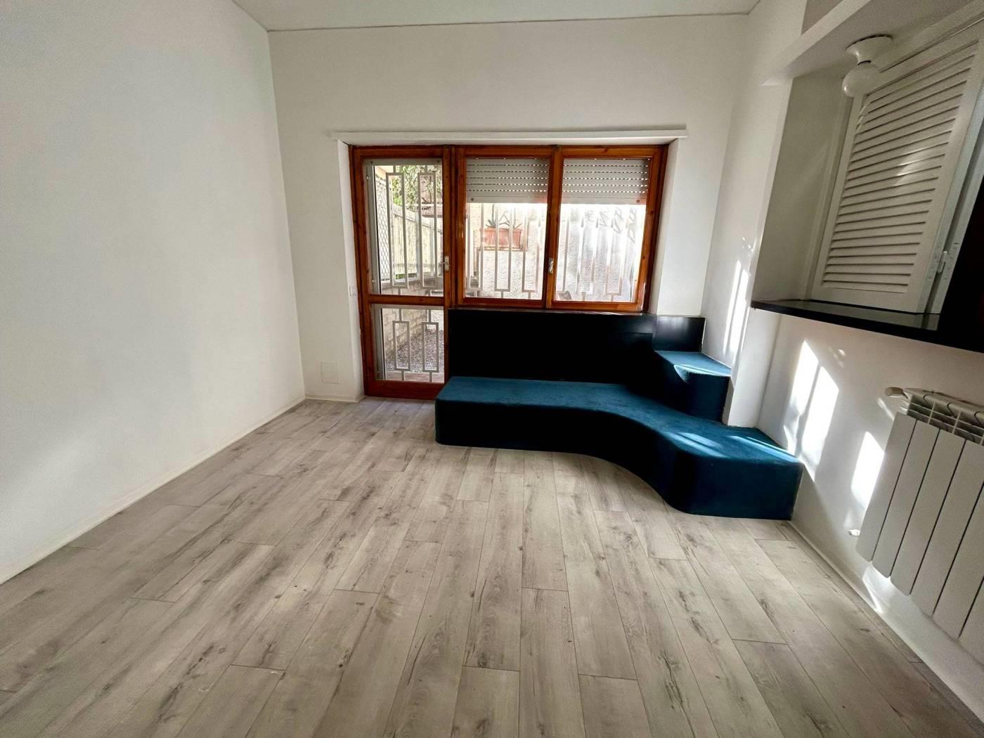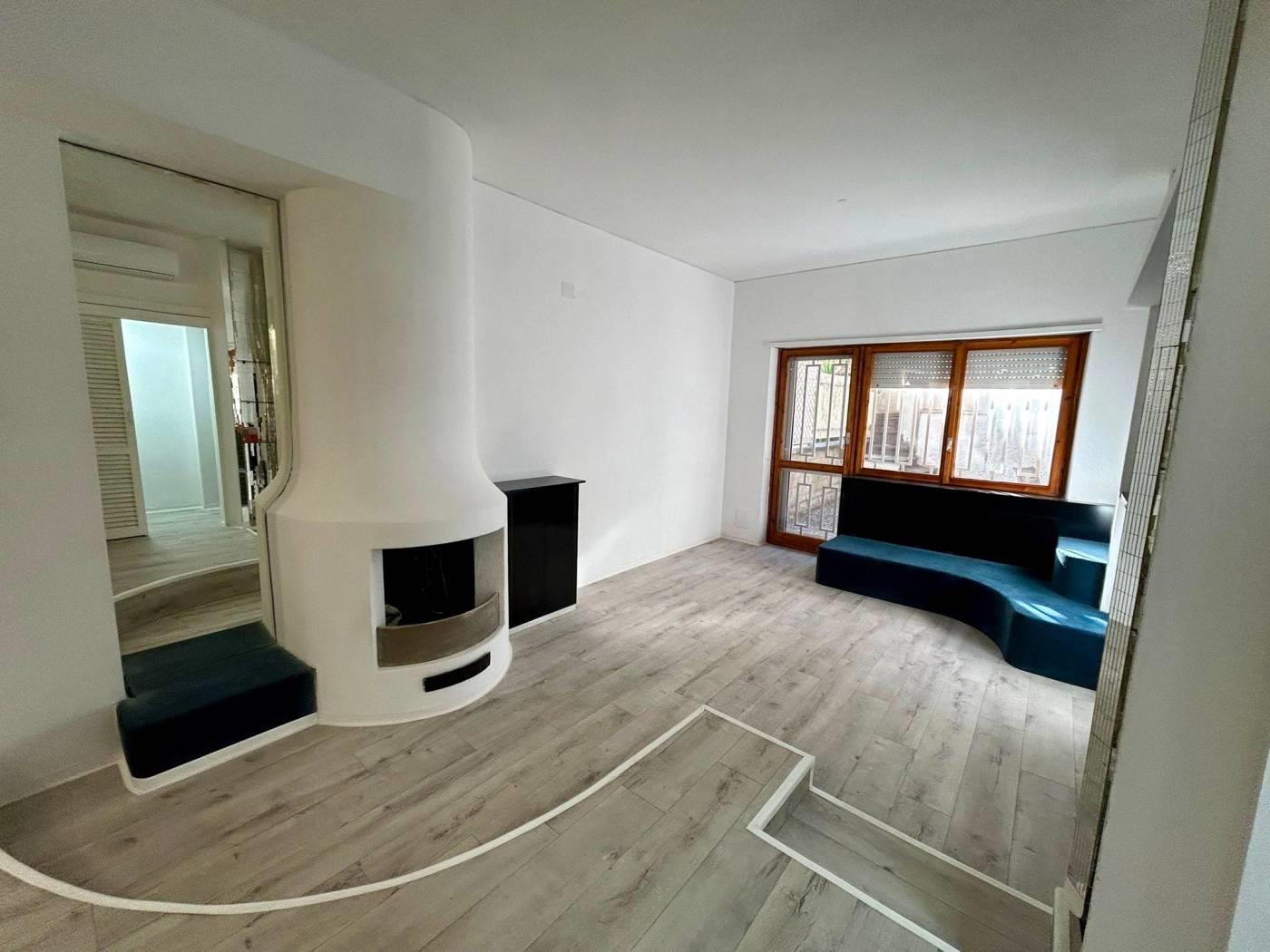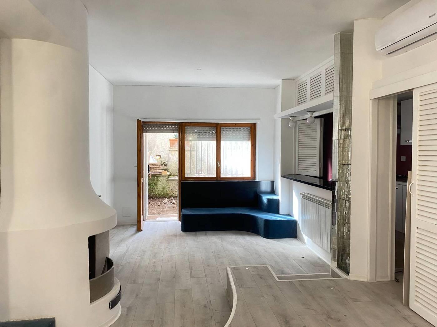 piano terreno -leggermente rialzato- con il primo ingresso condominiale in via vito sinisi n.71. tramite porta blindata porta blindata si ha accesso all’ ampio ambiente open space con zona notte e letto circolare a vista dotato di armadiatura/bouaserie su misura,successiva area pranzo con camino, cucinotto a gas 4 fuochi, indipendente e finestrato completo ed arredato, con pass/bancone vivande con apertura nel salone. l'immobile ha un unico accesso al giardino tramite porta finestra (le finestre sono tutte dotate di zanzariere e grate) dove e' presente 1armadiatura da esterno contenente la caldaia nuova (il riscaldamento e' termoautonomo). dal giardino la scalinata presente porta all’iingresso indipendente che trova accesso in via carlo pirzio biroli fronte parco (via questa molto tranquilla e silenziosa dove e' possibile anche trovare ulteriore parcheggio). bagno nuovo e ristrutturato con arredo di pregio e design con box con piatto doccia maggiorato. presente anche un piccolo vano utilizzabile come ripostiglio ed un ampia zona spogliatoio/cabina armadio/vestiaire che alla bisogna puo' trasformarsi facilmente in zona studio o per ospiti. completano la prioprieta' la cantina asciutta, e l'ampio posto auto di 40 mq nel garage condominiale coperto cui si puo accedere sia dall'esterno tramite telecomando che dall'interno del condominio anche tramite ascensore.