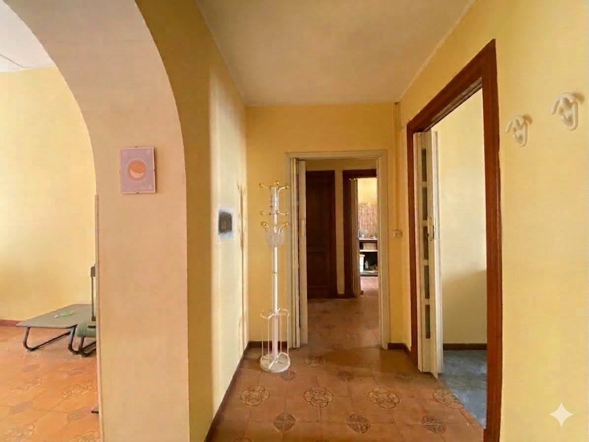 Composto interamente da: ampio ingresso, soggiorno, due camere da letto, servizio, ampio ripostiglio e due balconi. L’appartamento necessita di interventi di ristrutturazione. Doppia l’esposizione prevalentemente esterna, il che rende l’immobile molto luminoso.