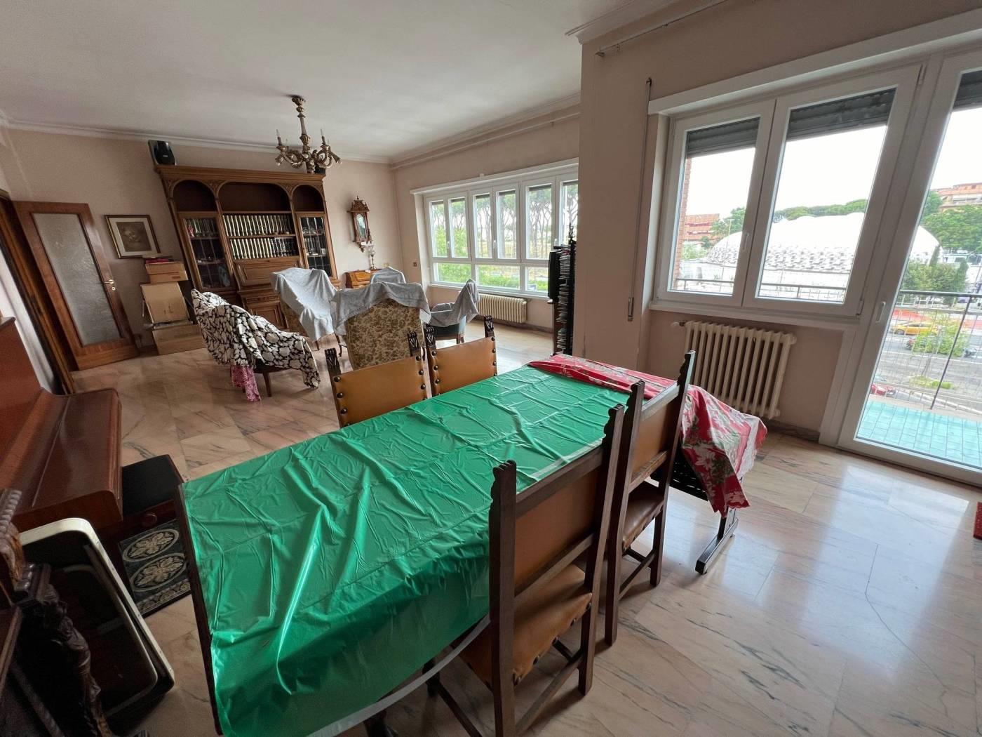 Piazza dei Giureconsulti, adiacente Pineta Sacchetti, esattamente in Circonvallazione Cornelia, in stabile di soli 4 piani, residenziale, a pochi minuti a piedi dalla metro A Cornelia e adiacente a tutti i principali servizi di zona, proponiamo la vendita di un appartamento di ampia metratura, divisibile di c.a. 195 mq con box doppio di c.a. 27 mq e soffitta di c.a. 6 mq con tripla esposizione, luminoso (esposizione sud-est) composto di doppi ingressi, ampio salone doppio di rappresentanza con balconata, quattro camere, studio, due spaziosissimi servizi di cui uno con zona lavanderia, cucina abitabile, due balconi, armadi a muro, pavimentazione in parte con marmo rosa di Portogallo, parquet, infissi "Schuco" legno-alluminio con vetrocamera, termoautonomo, in buone condizioni ma da ripulire. Euro 629.000,00