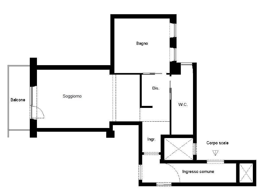 L’immobile si presenta finemente ed interamente ristrutturato ed è composto da ingresso, soggiorno, cucina a vista, servizi e balcone.