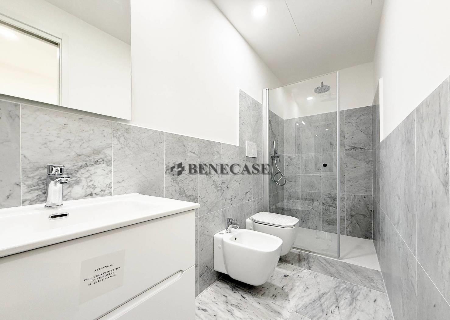 L’appartamento è dotato di porta blindata, infissi in vetro camera e pvc, serramenti in alluminio, illuminazione a led e faretti, pavimentazione in marmo di carrara, impianto canalizzato di condizionamento aria caldo/freddo.