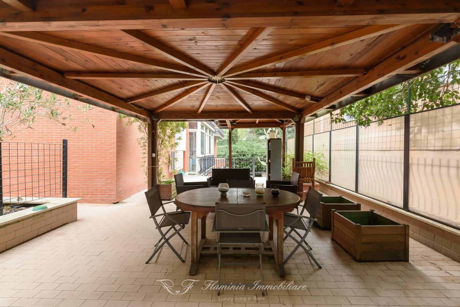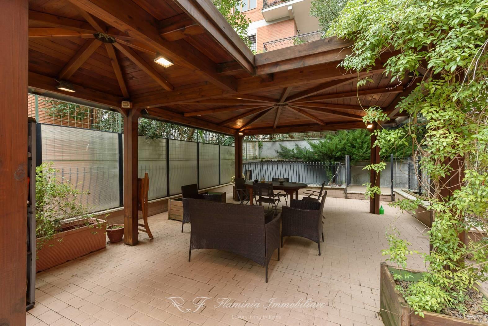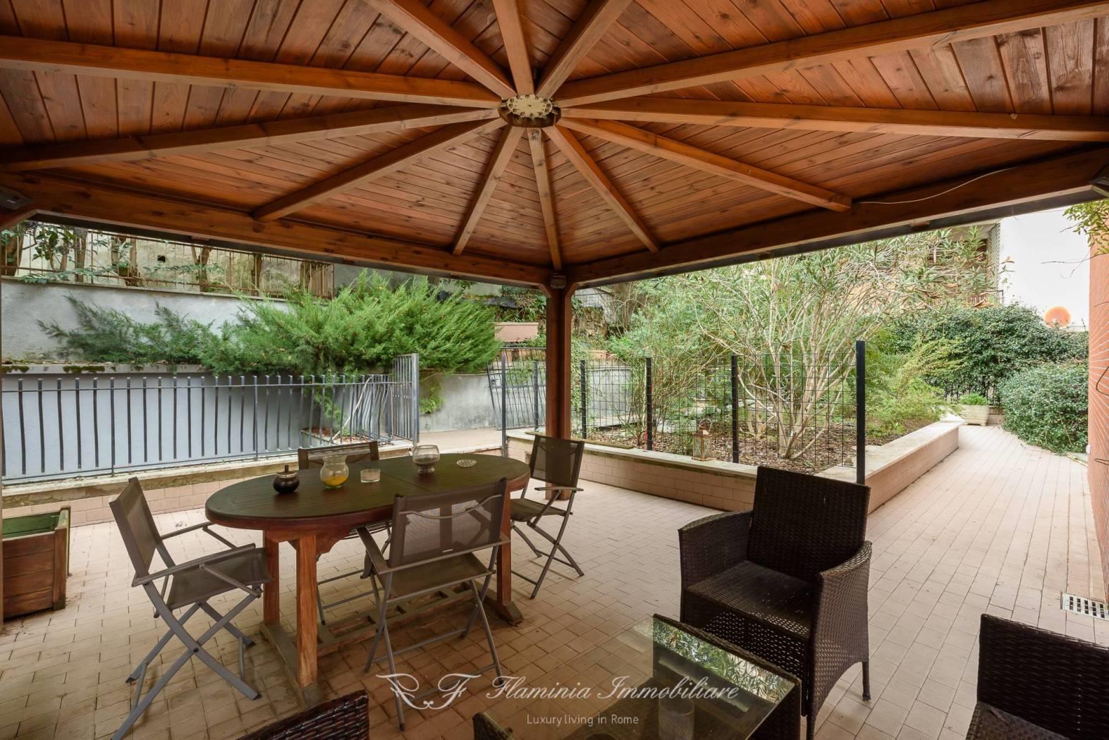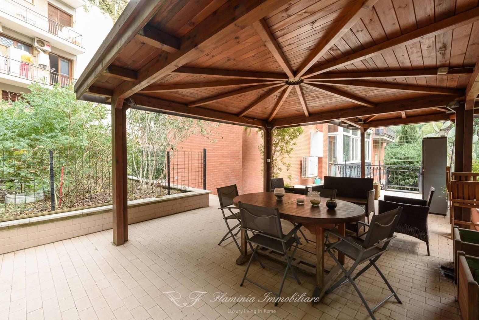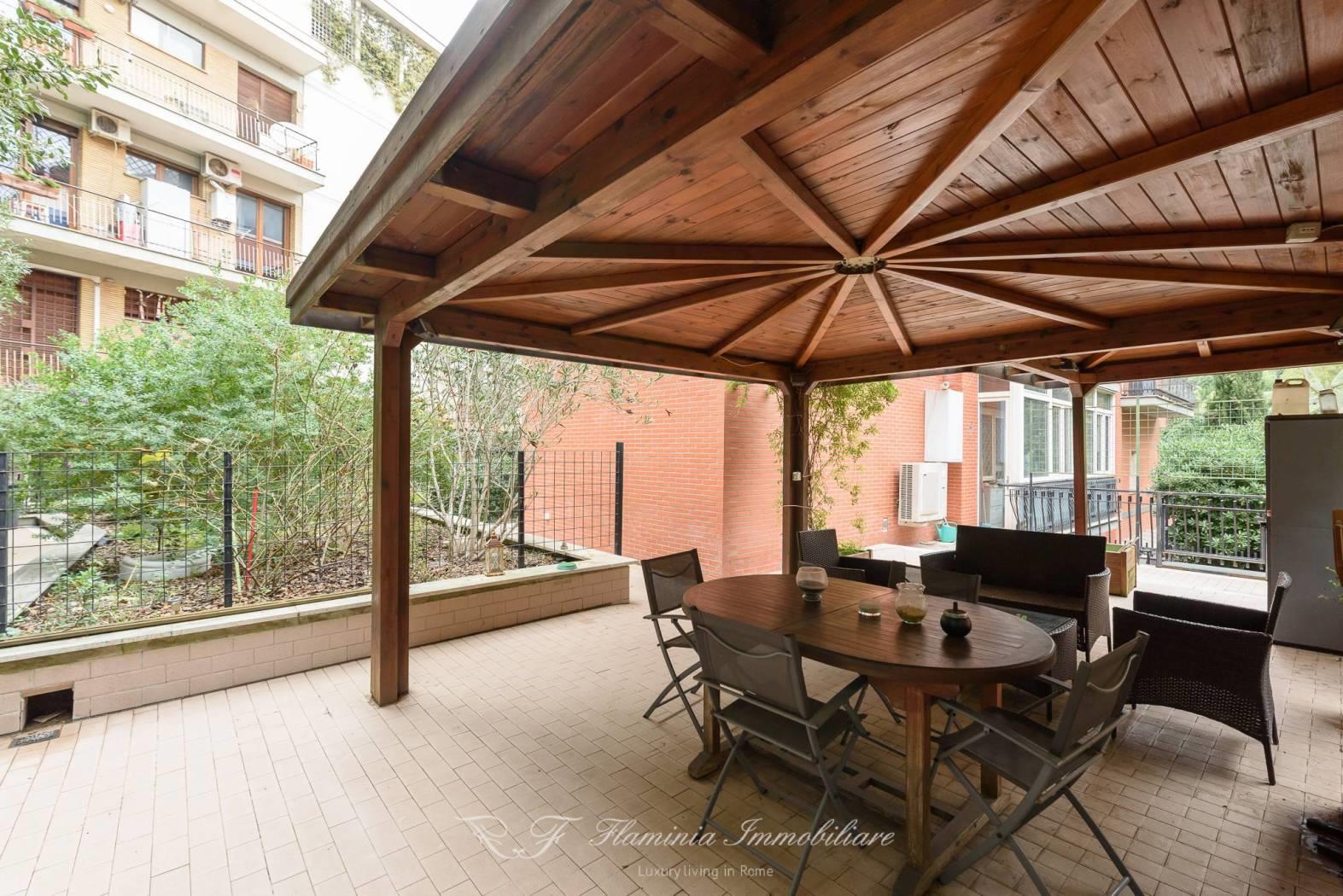 In palazzina signorile a cortina immersa nel verde , proponiamo una rara opportunità di una abitazione con terrazza di circa 200 mq con ingresso anche da Via Fani , l'abitazione è posta al prino primo ed è in uno stato di manutenzione ottima , un ampio salone con affacci nel verde e nel giardino terrazzato di proprietà , cucina abitabile , nella zona notte si trovano grandi camere da letto con due bagni , un ampio corridoio di notevole dimensioni , dalle camere e dal salone si accede alla terrazza che gira su tre lati della casa dove è stata realizzata una zona veranda esterna in legno per poter godere pranzi e cene estive con 10/12 ospiti .