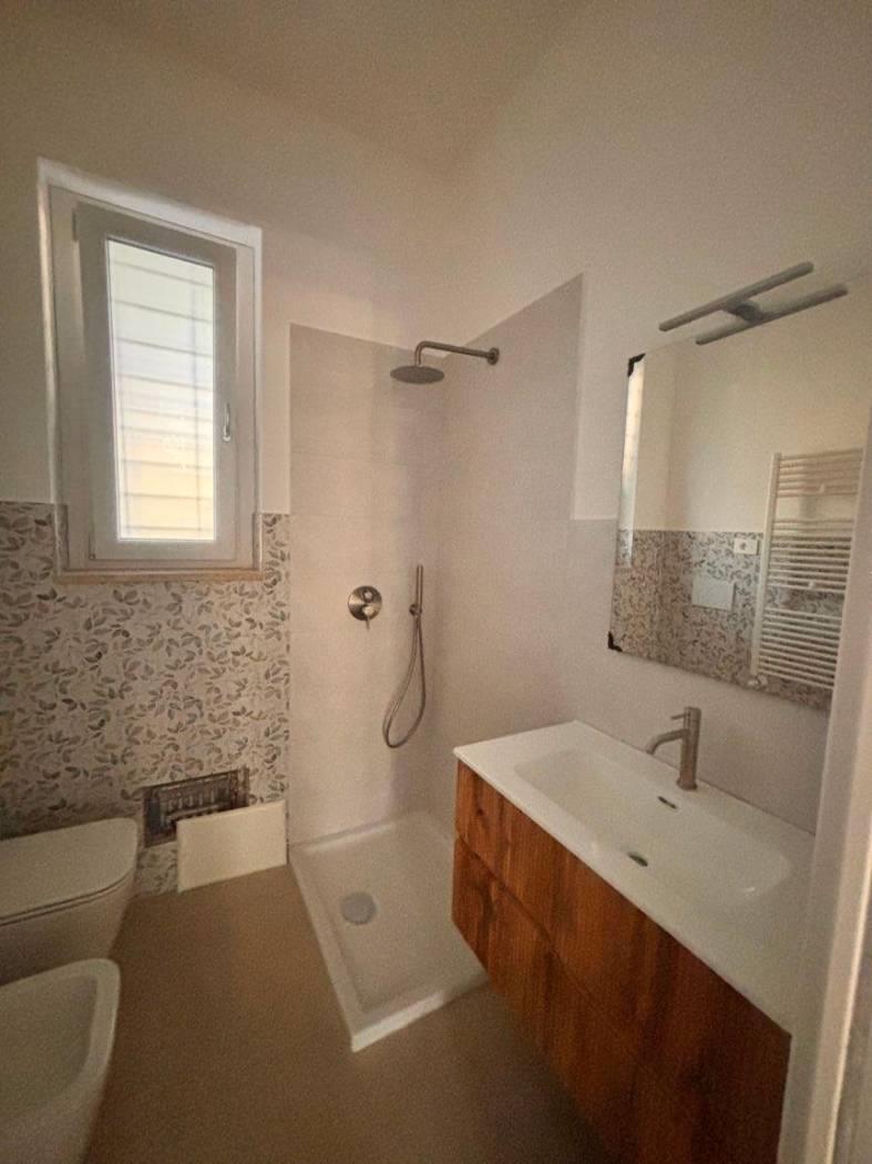 o Bagno zona residenziale completo di mobile arredo/specchio, con doccia attrezzata con soffione a