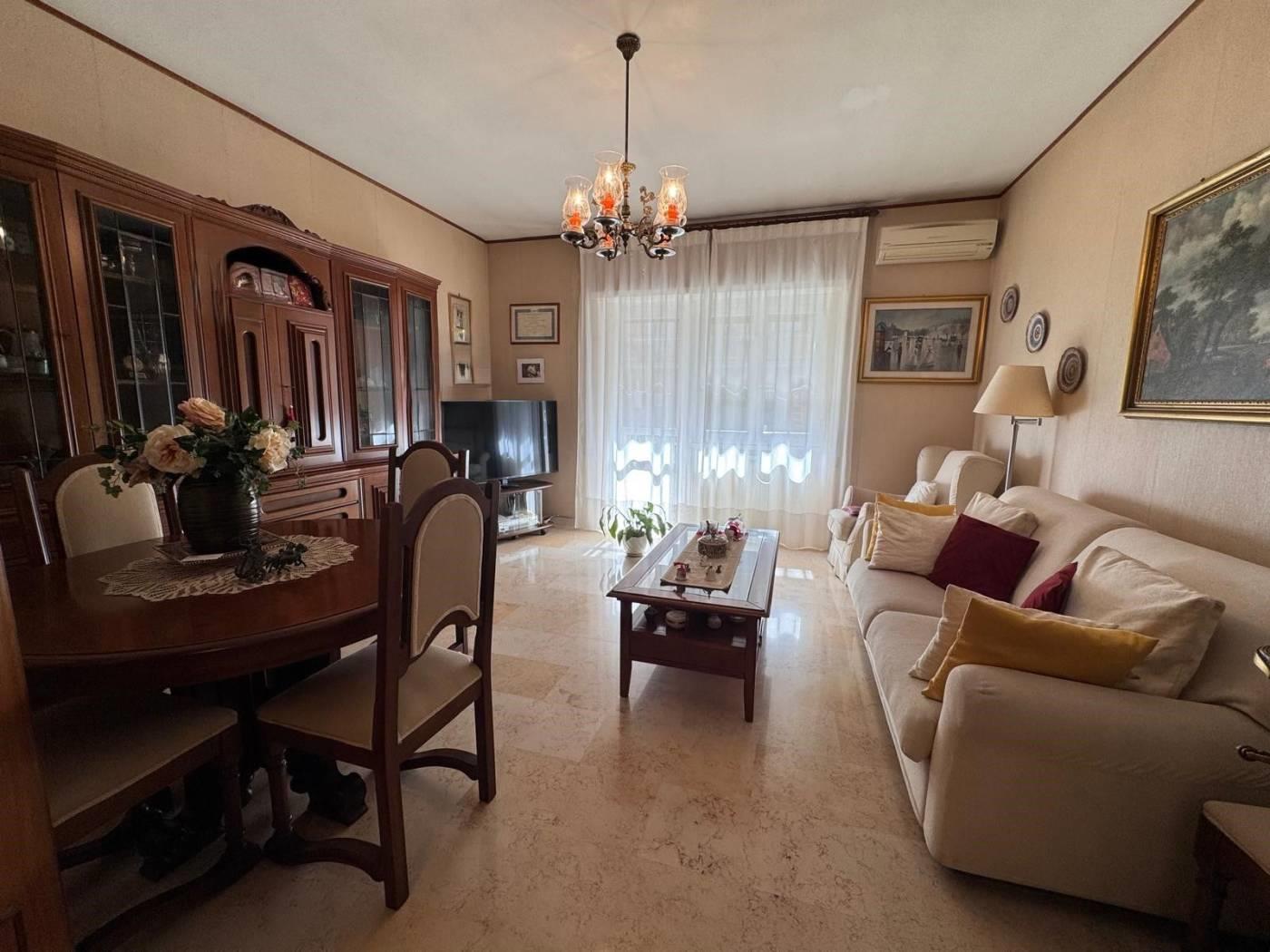 Il salone doppio, luminoso e spazioso, ha accesso diretto al balcone perimetrale, così come tutte le altre stanze dell’appartamento.