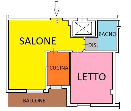 L'appartamento si trova al piano terzo ed è così suddiviso: salone, cucina abitabile, disimpegno, camera da letto e bagno. La zona giorno affaccia sul balcone che lo rende molto luminoso anche per l'esposizione a sud/est.