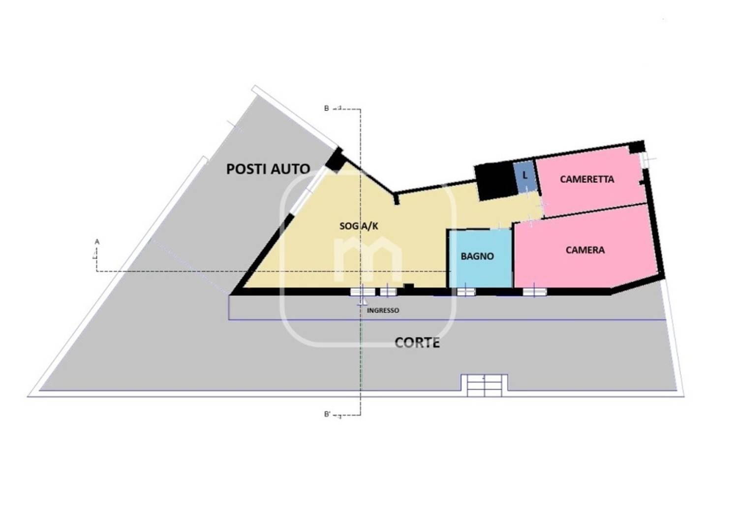 L’immobile si sviluppa su un unico livello ed è composto da un luminoso soggiorno con angolo cottura, camera matrimoniale, cameretta, pratico ripostiglio/lavanderia e bagno.