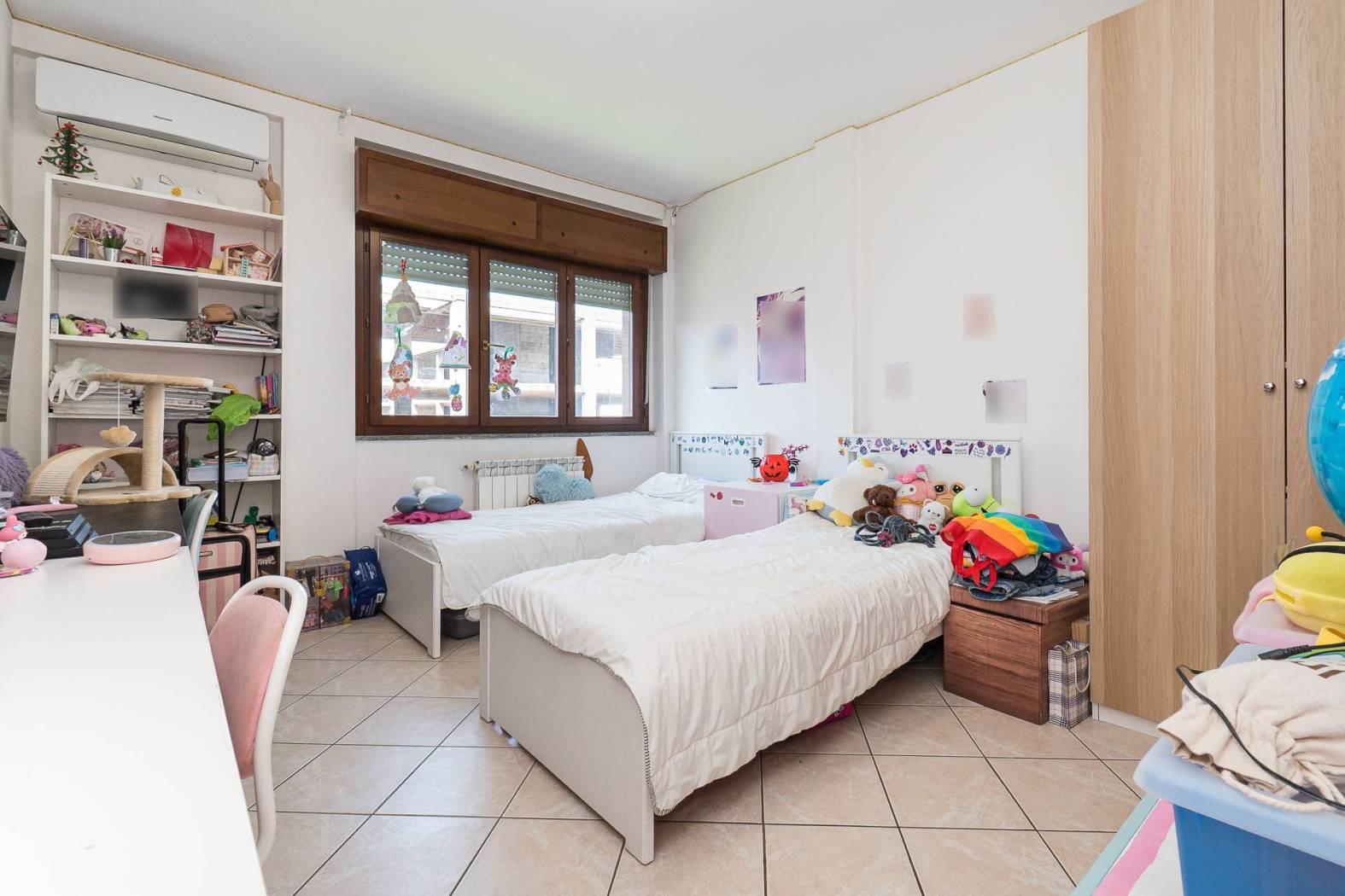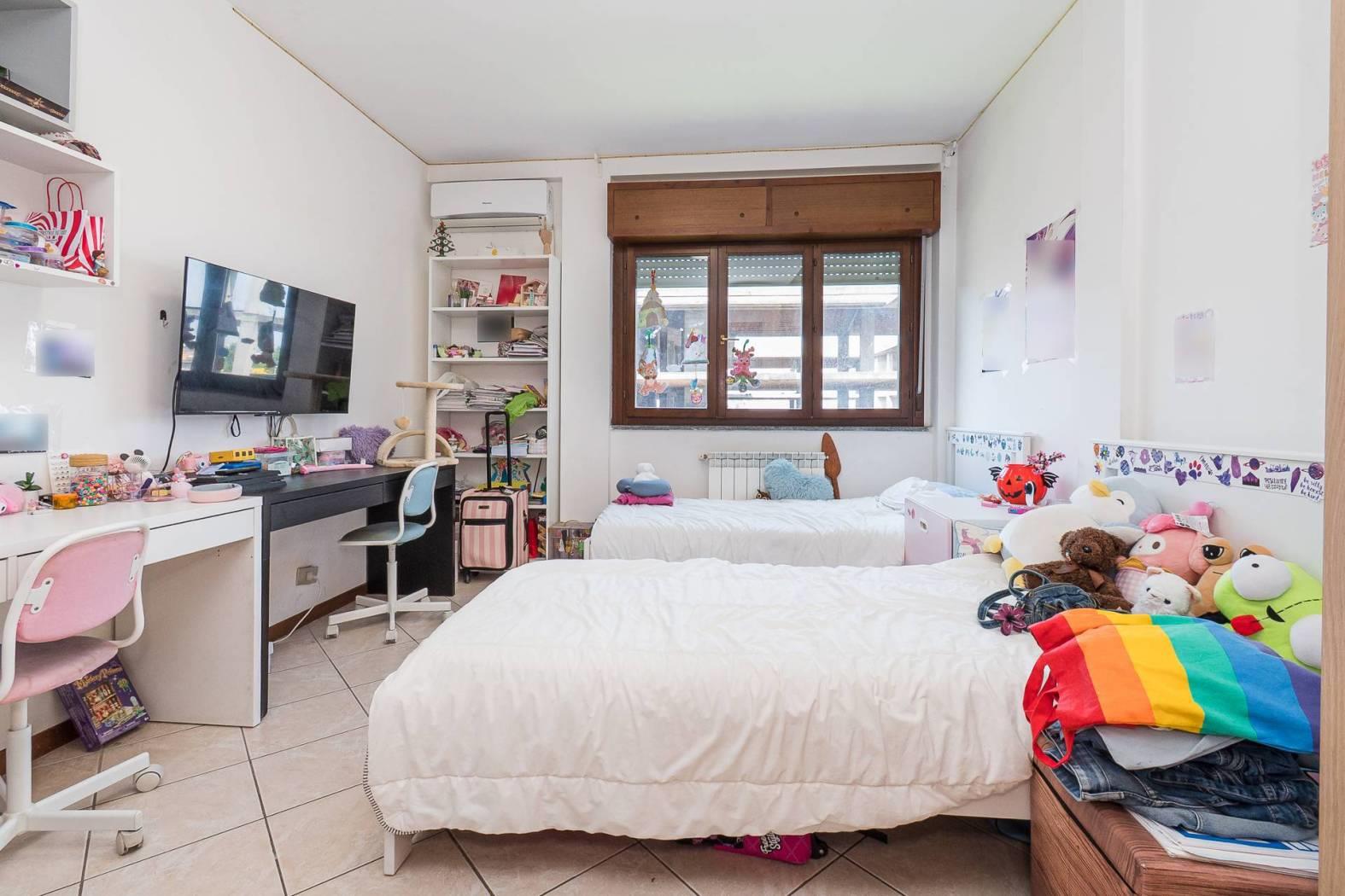 L’appartamento è posto al terzo piano ed è composto da salone, cucina, corridoio, camera matrimoniale con bagno privato, cameretta, secondo bagno con impianto doccia, balcone.
