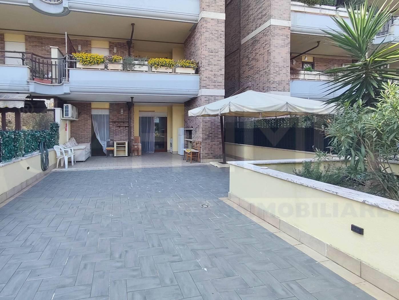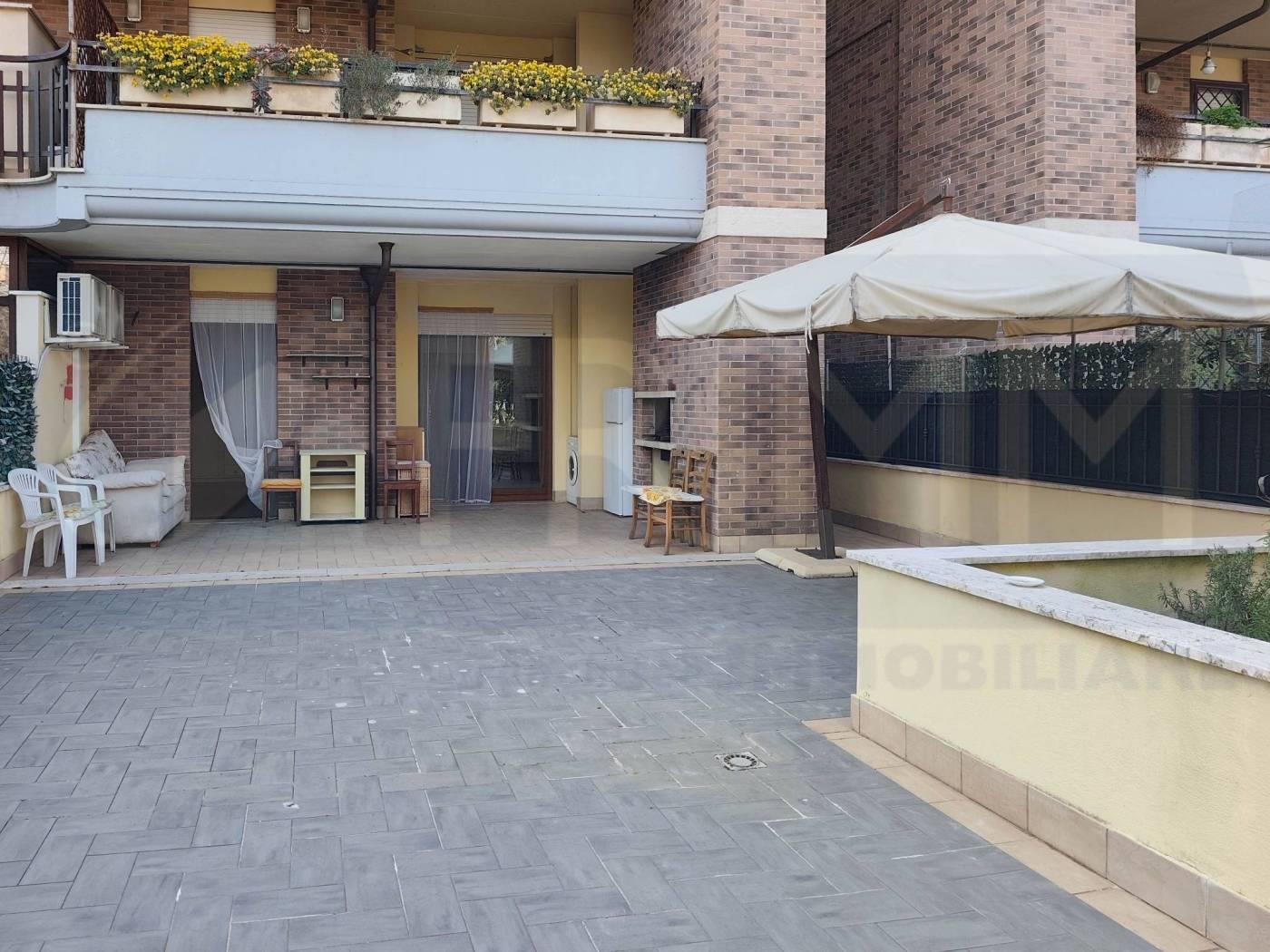 Pomezia, Colli di Enea, Viale Odisseo, proponiamo in vendita appartamento bilocale con box auto e ampio spazio esterno. L'appartamento è sito al piano terra di una piccola palazzina in cortina ed è così composto: soggiorno a vista con angolo cottura, camera, bagno con finestra, patio con barbecue, giardino lastricato con parte a verde. Completa la proprietà un Box Auto. APE "G" info e appuntamenti FRIMM Pomezia 069121913