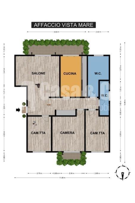 Mentre la metratura commerciale è di: 110,81 mq. circa. (che comprende quota parte dei muri perimetrali, del balcone).