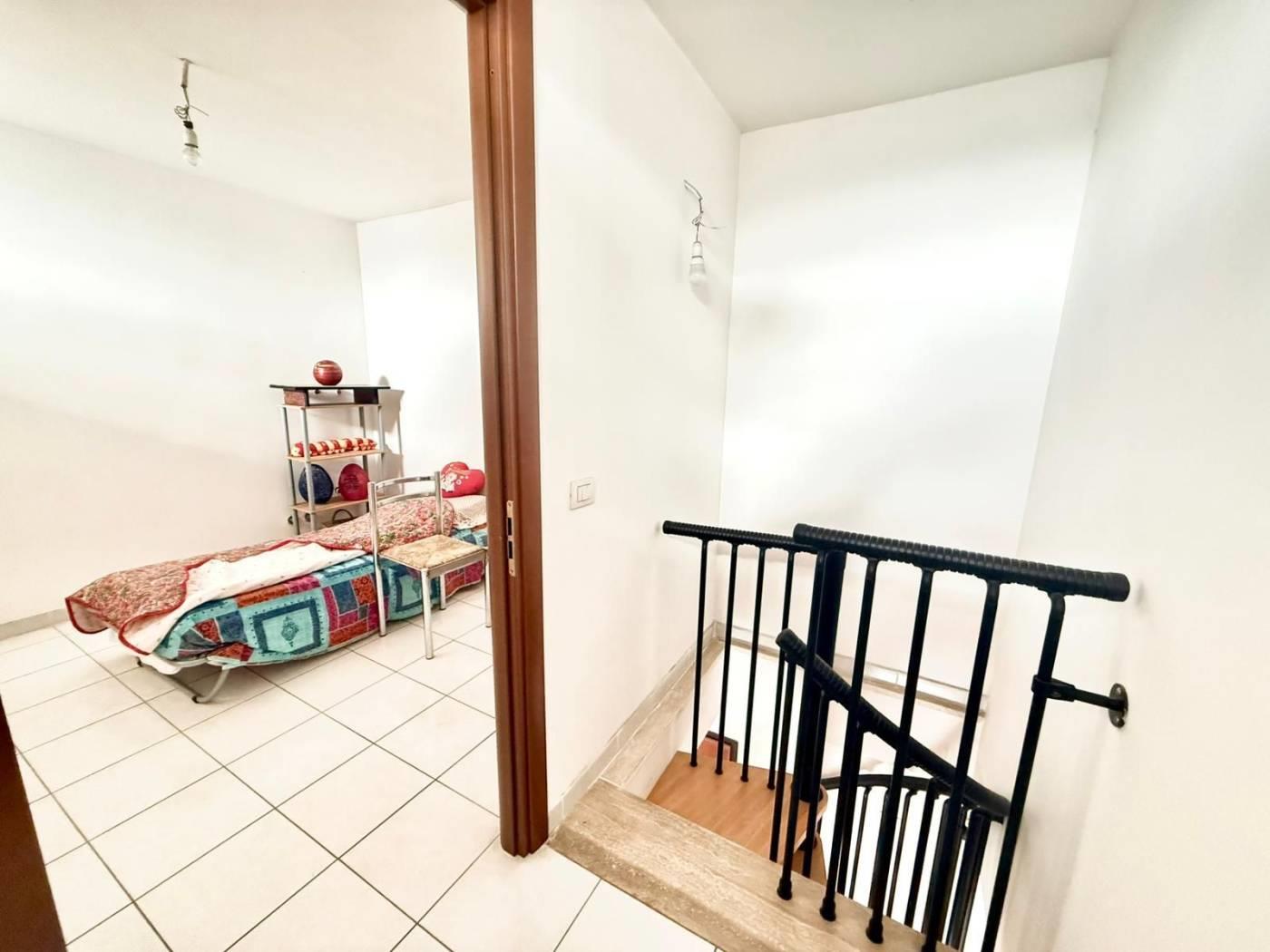 La zona notte del piano principale comprende una camera da letto e un bagno. Dal soggiorno, una scala a chiocciola conduce al piano superiore, dove si trova una seconda camera, perfetta come stanza aggiuntiva, studio o area ospiti.