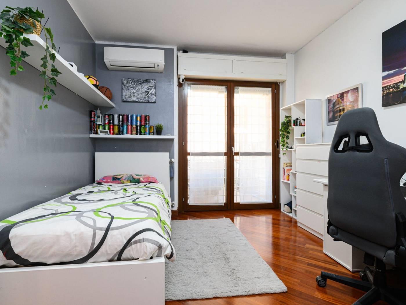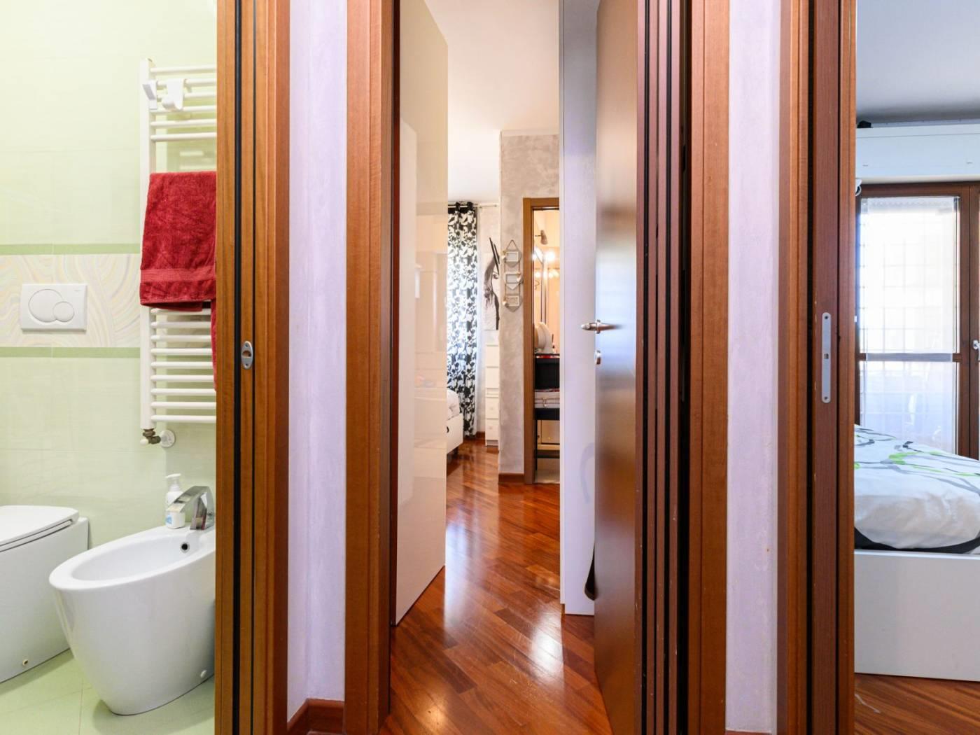 L’appartamento, che gode di una buona luminosità grazie alla sua esposizione a sud/ovest, è dotato di finestre in legno doppio vetro camera con tapparelle motorizzate, di grate anti intrusione con predisposizione per allarme volumetrico, di riscaldamento autonomo con caldaia, di parquet in tutti i principali ambienti, di climatizzazione freddo/caldo e di porta blindata.