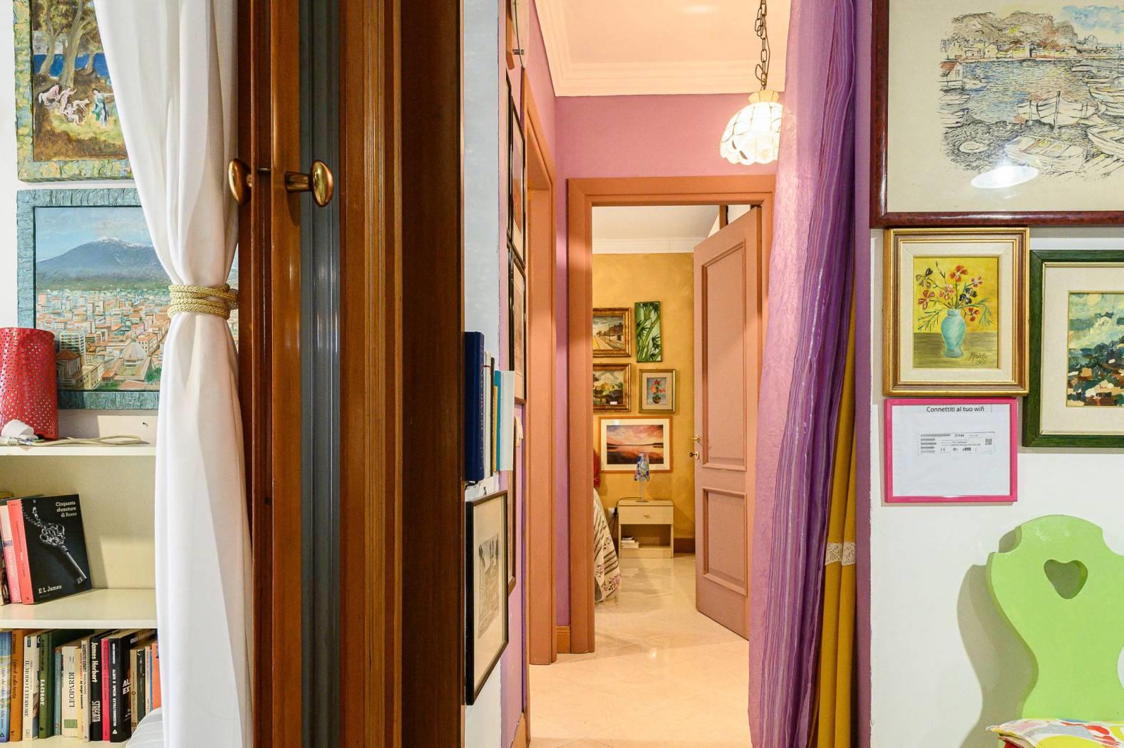 Internamente l’appartamento è rifinito con pavimentazione in gres porcellanato effetto marmo, infissi in legno con vetrocamera e dispone di riscaldamento autonomo e aria condizionata in tutti gli ambienti, garantendo comfort in ogni stagione.