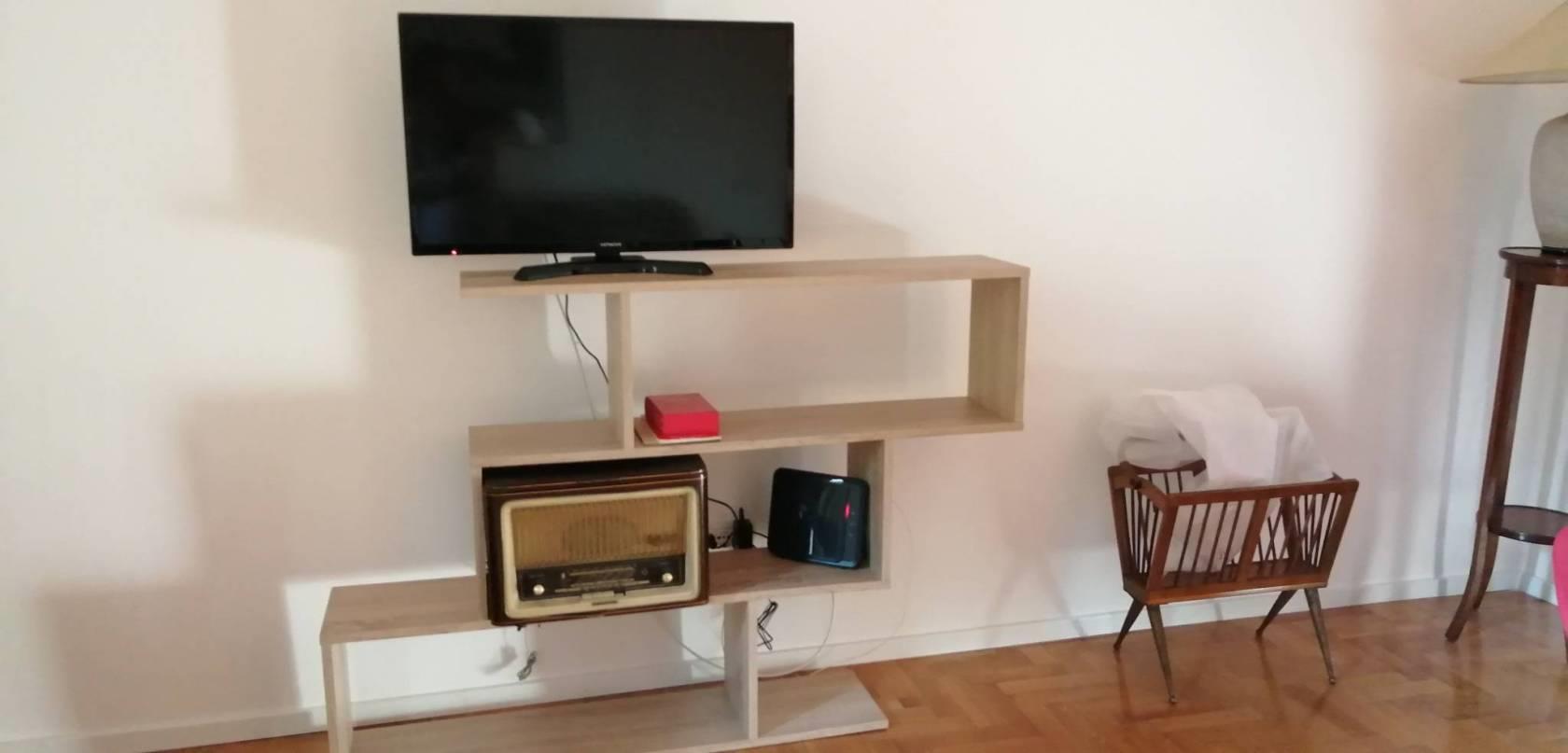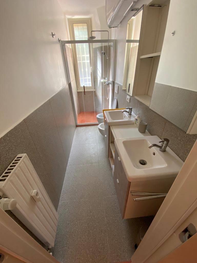 Interamente ristrutturato e arredato, si compone di uno spazio con cucina a vista, soggiorno, due camere (una matrimoniale e una singola, adatta anche come studio), due bagni, di cui uno con doccia e l’altro con lavanderia. I bagni sono entrambi con finestra.