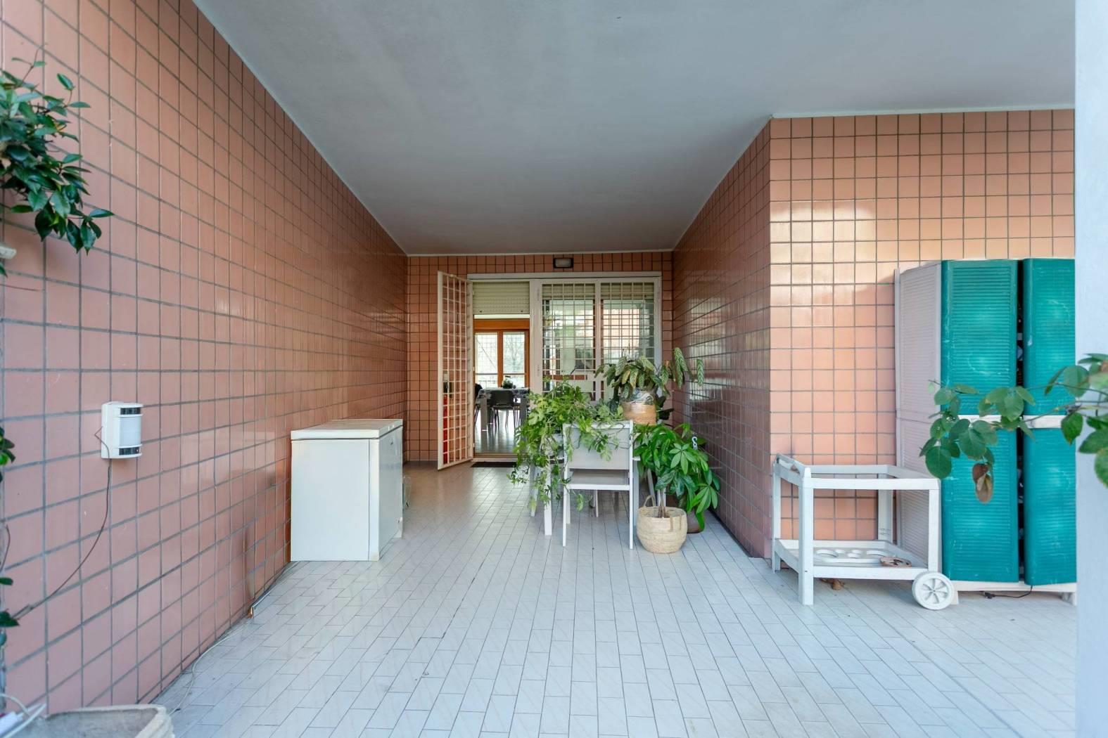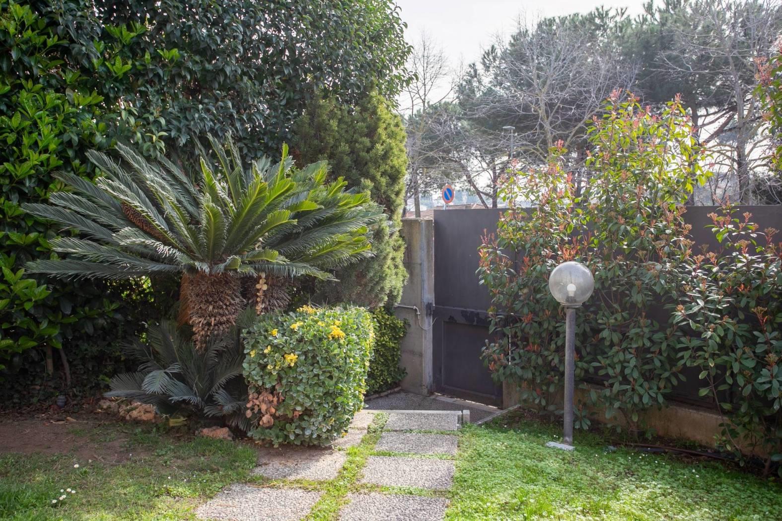 La proprietà è arricchita da due giardini esclusivi, uno anteriore e uno posteriore , per una superficie complessiva di circa 250 mq, dotati di ampio patio e veranda. Dal giardino posteriore è inoltre presente un ingresso indipendente da Via Adeodato Ressi. Le logge e l’ampio patio offrono piacevoli spazi esterni ideali per cene e pranzi all’aperto, immersi nella tranquillità del verde privato. Il comprensorio, costruito alla fine degli anni ’90, rappresenta un’oasi di tranquillità e riservatezza, caratterizzata da ampie aree verdi condominiali ben curate, con prati e aiuole. Completa la proprietà un box auto doppio di circa 34 mq al piano seminterrato e una cantina.