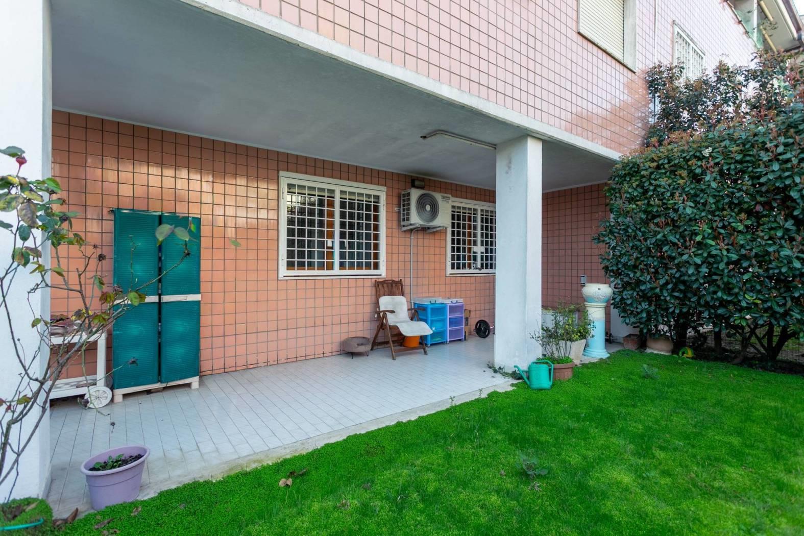 Quadrilocale ristrutturato con ampio giardino privato All’interno del comprensorio residenziale “Monte Cervino”, e precisamente in Via Agostino Magliani (Edificio C), proponiamo in vendita un elegante appartamento ristrutturato di circa 140 mq, situato al piano terra.